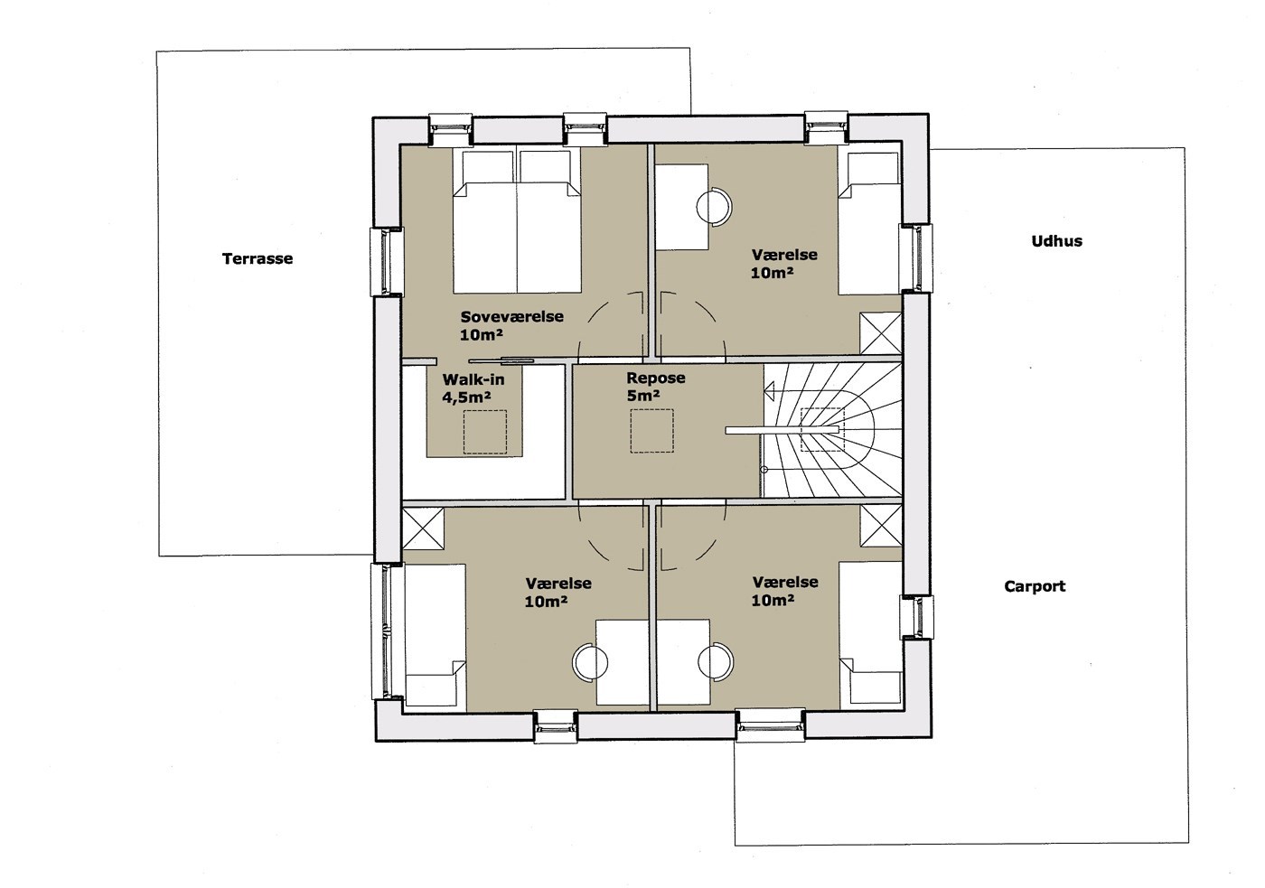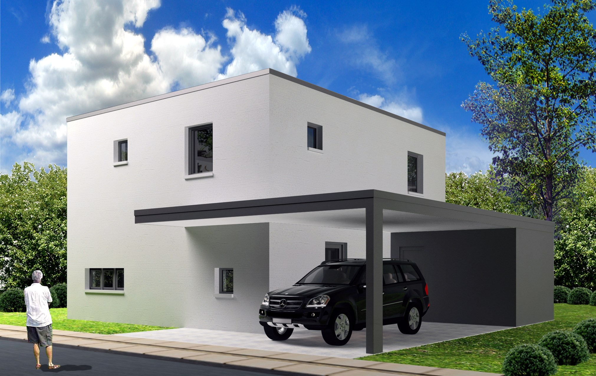 4 nye flotte kubistiske villaer på 135 m2 + carport og udhus.