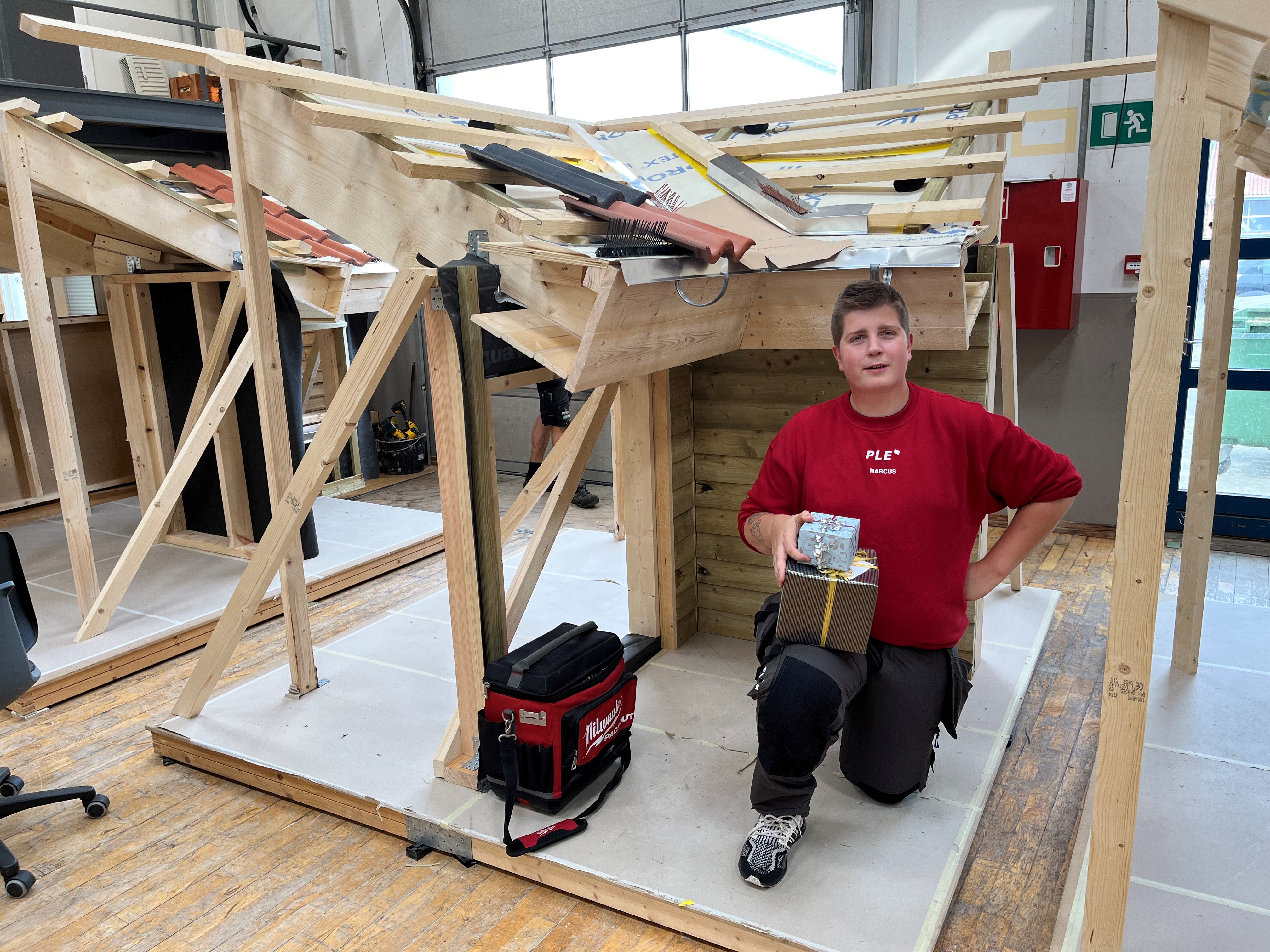 Marcus Lassen har bestået sin svendeprøve som tømrer hos PLE.