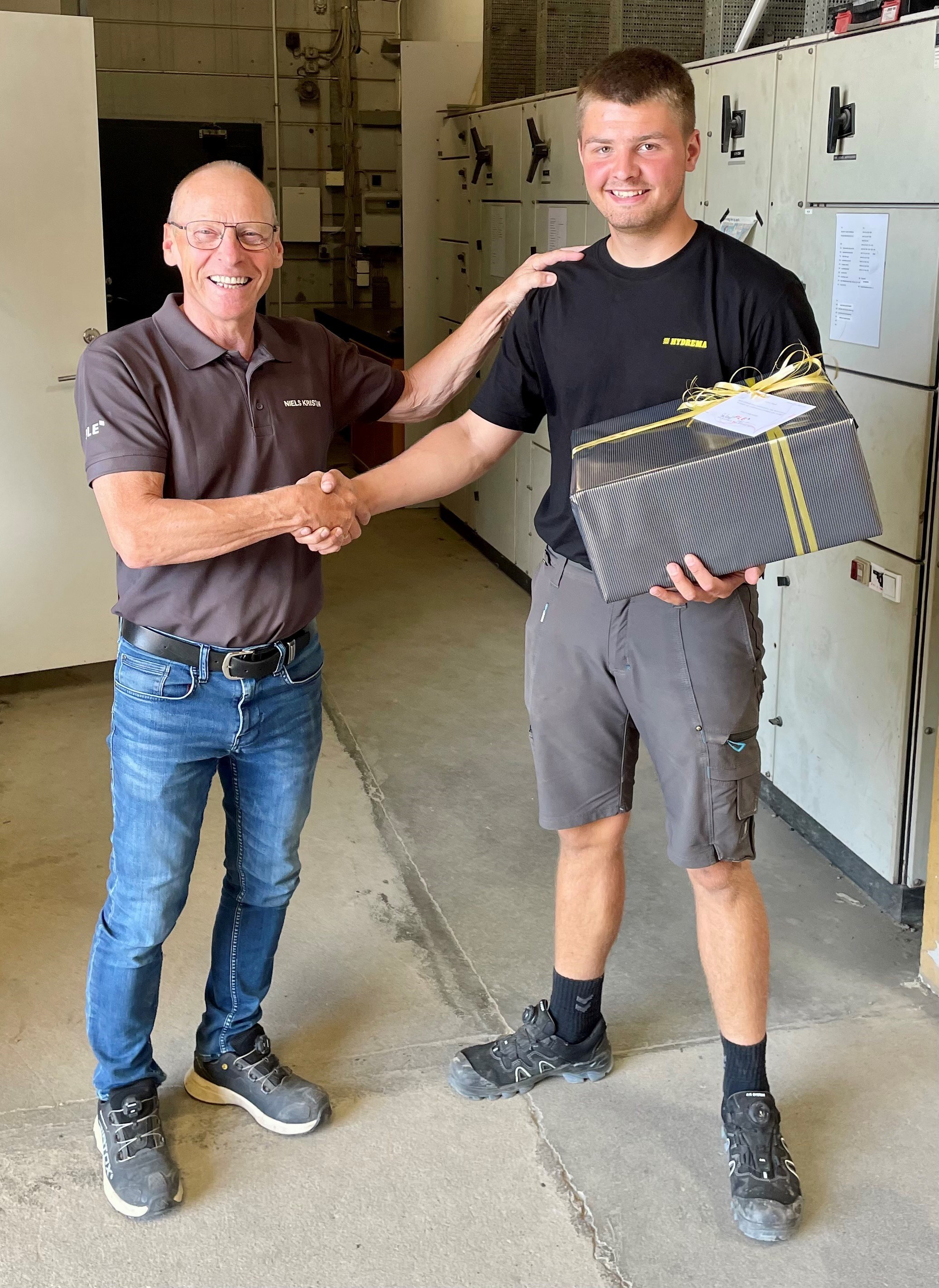 Vi ønsker Noah et stort tillykke med uddannelsen og ønsker samtidig Noah velkommen i firmaet som maskinfører.