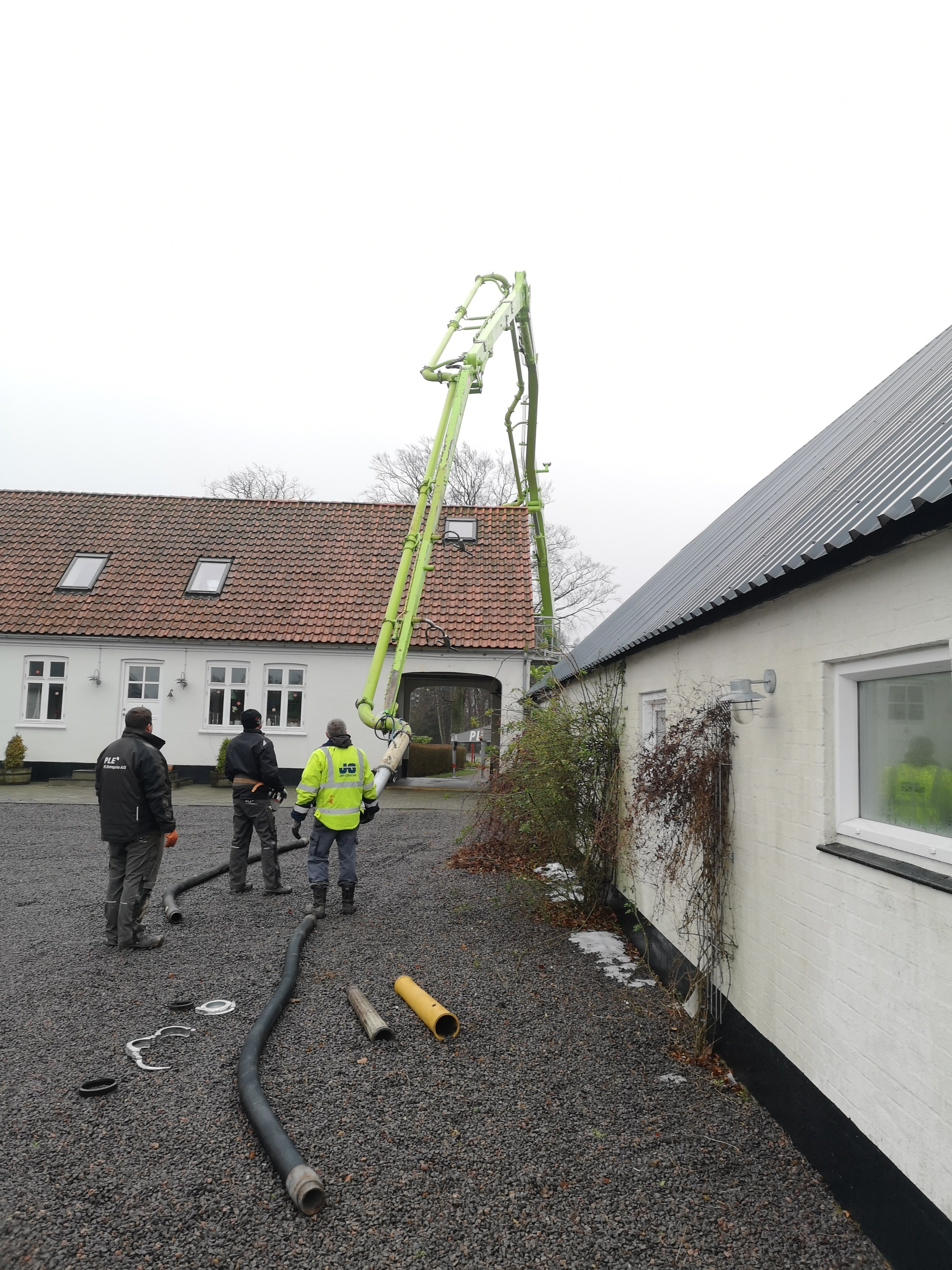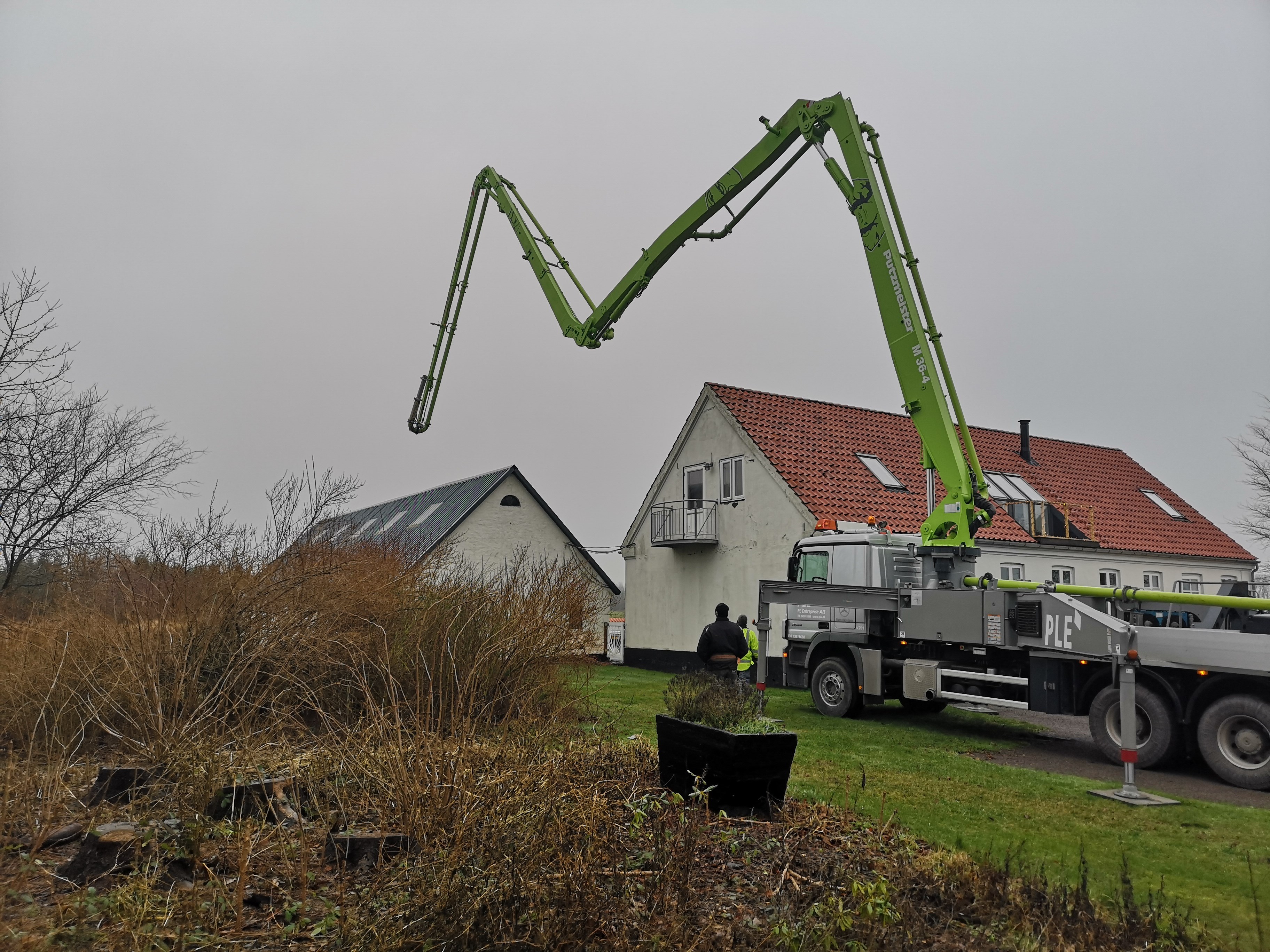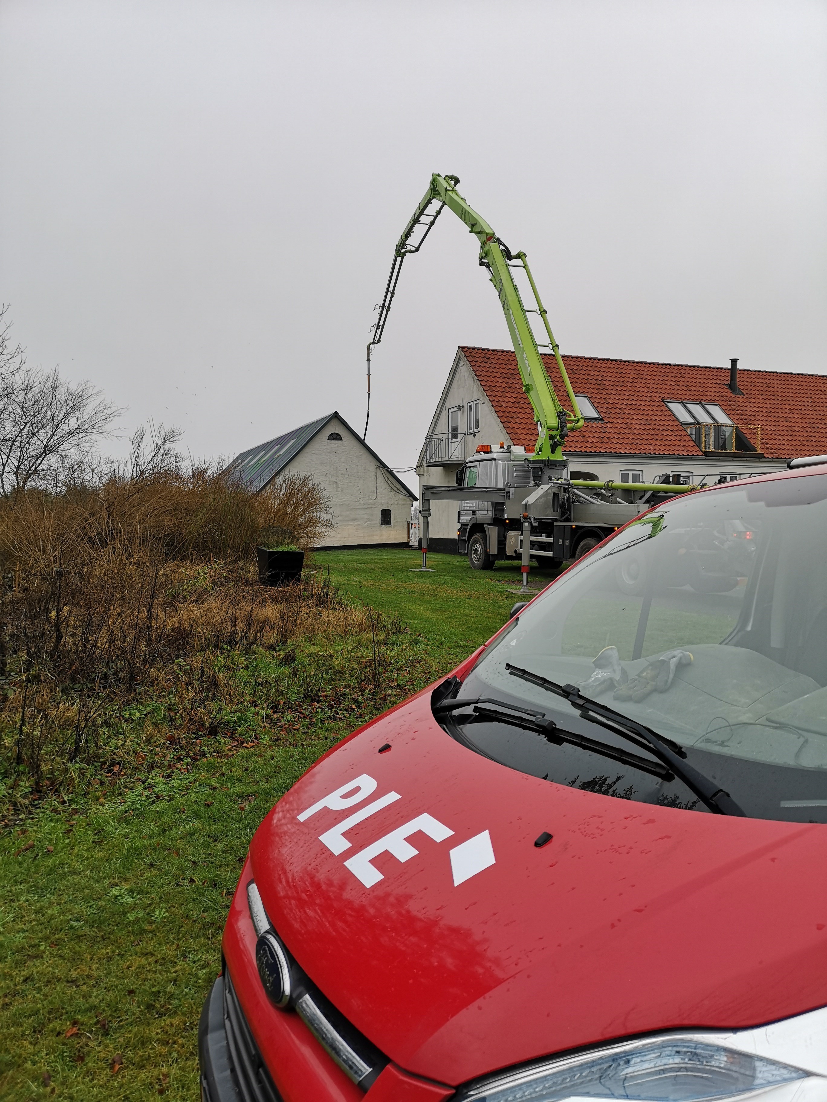 PLE har investeret i en nyere betonpumpe som kan række 36 mtr. og som allerede har været ude på tre opgaver, så nu er vi klar til at betjene alle vore kunder der skal have pumpet beton.
