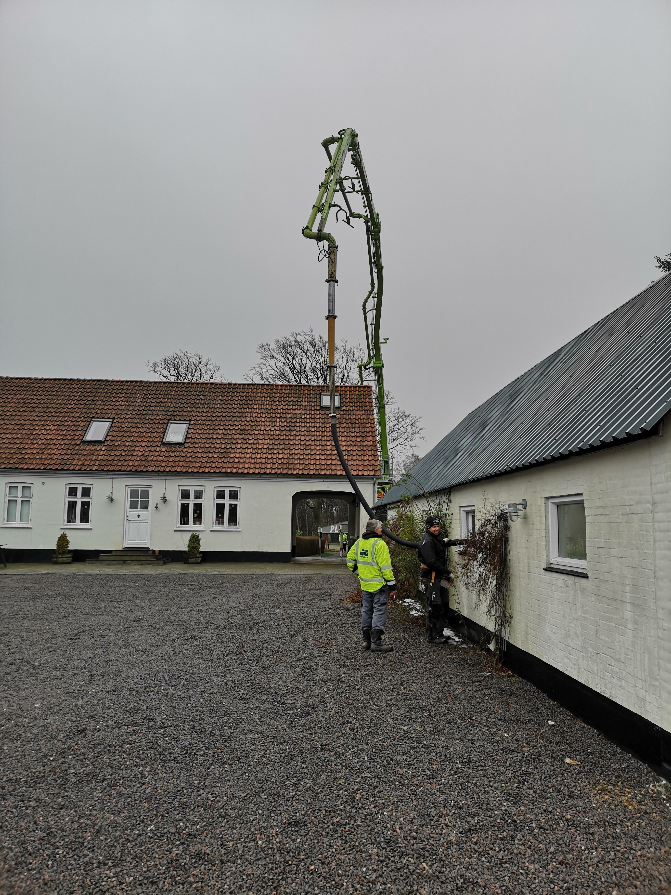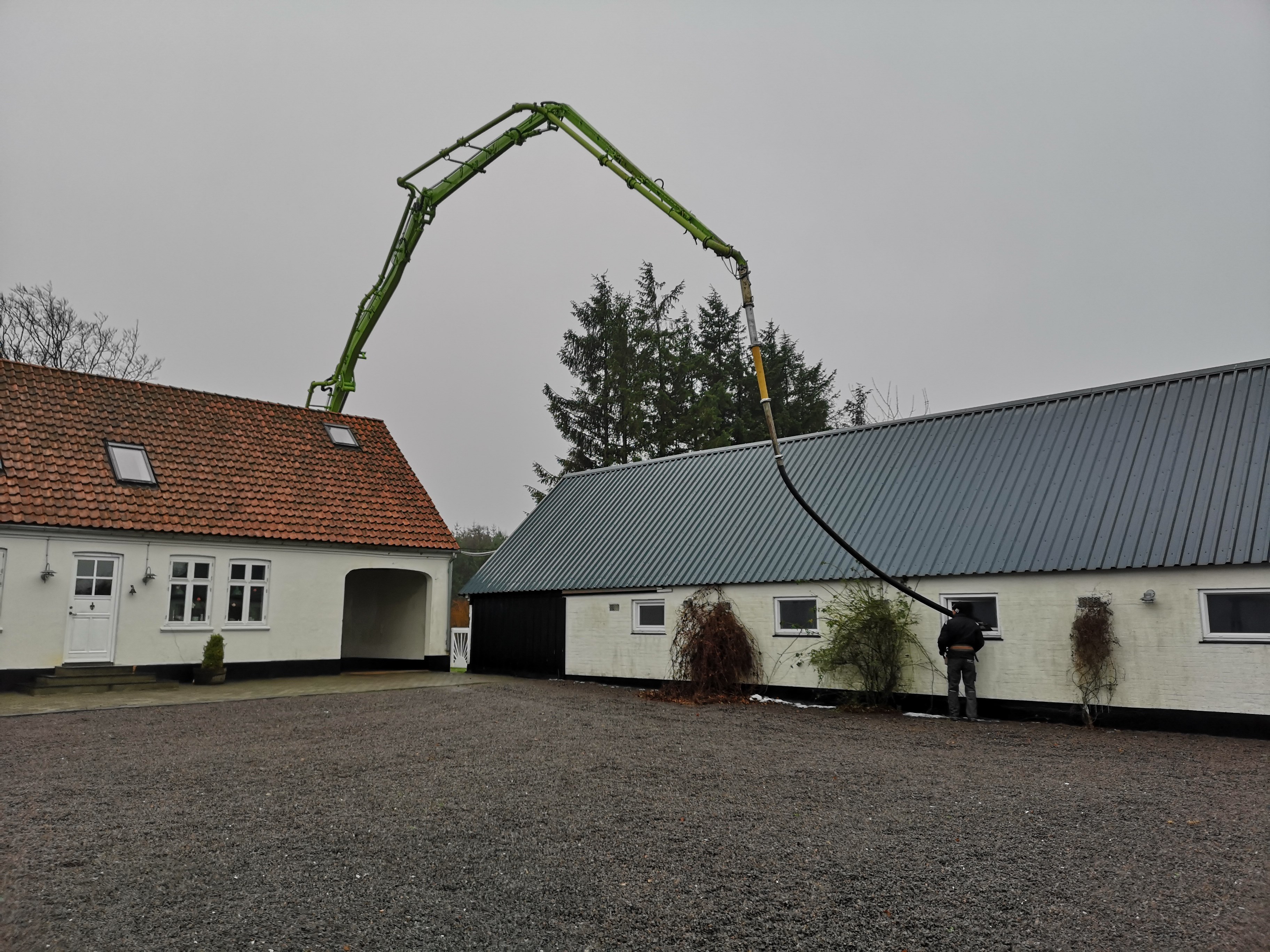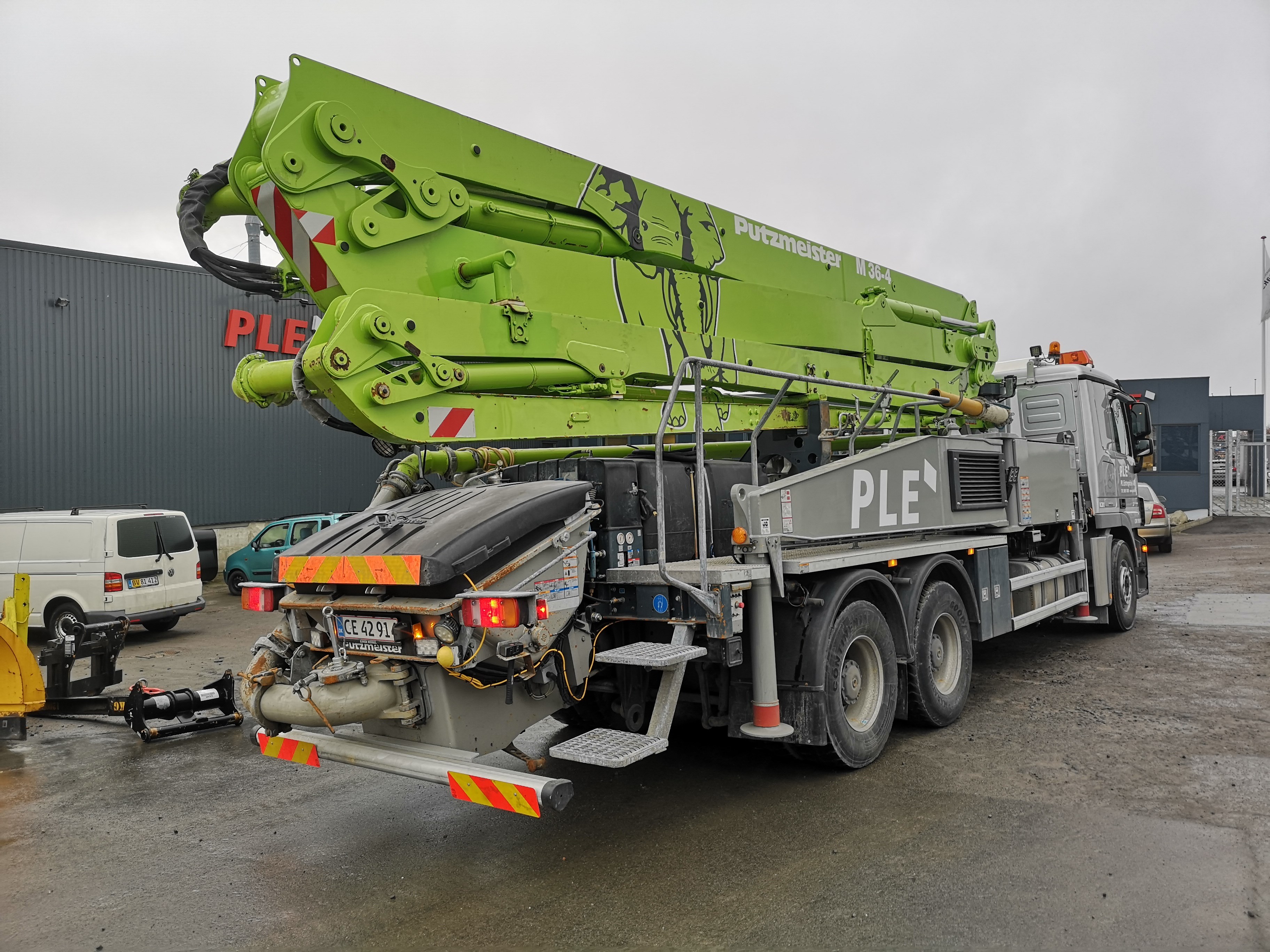 PLE har investeret i en nyere betonpumpe som kan række 36 mtr. og som allerede har været ude på tre opgaver, så nu er vi klar til at betjene alle vore kunder der skal have pumpet beton.