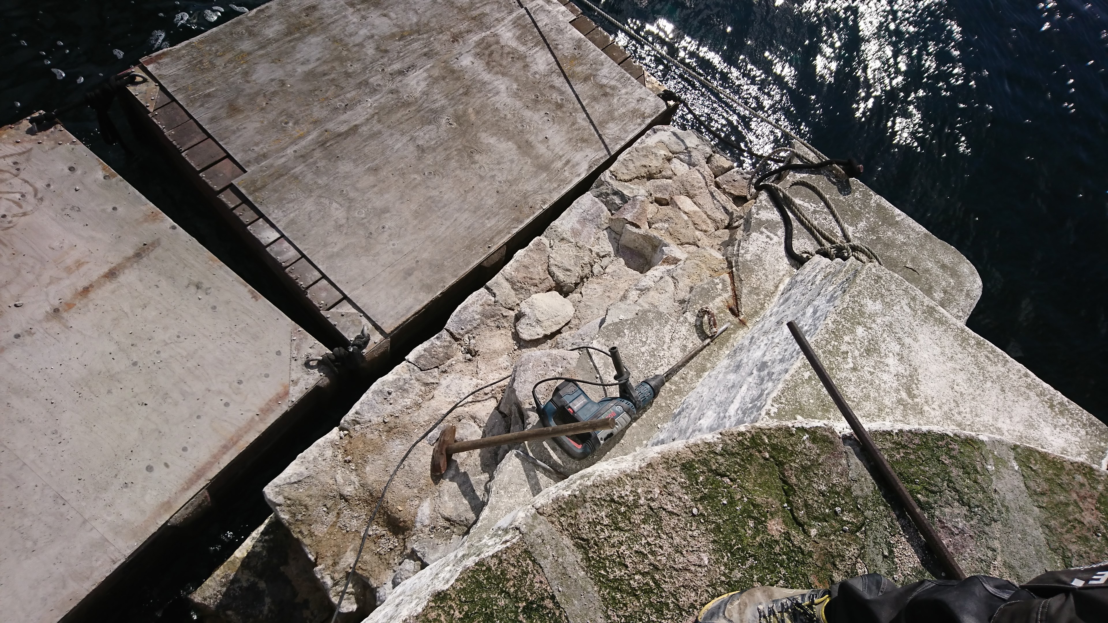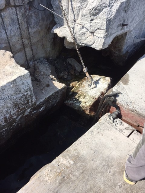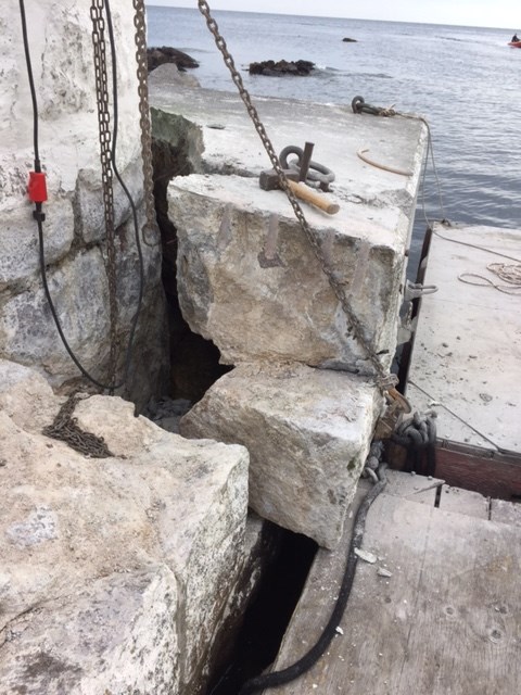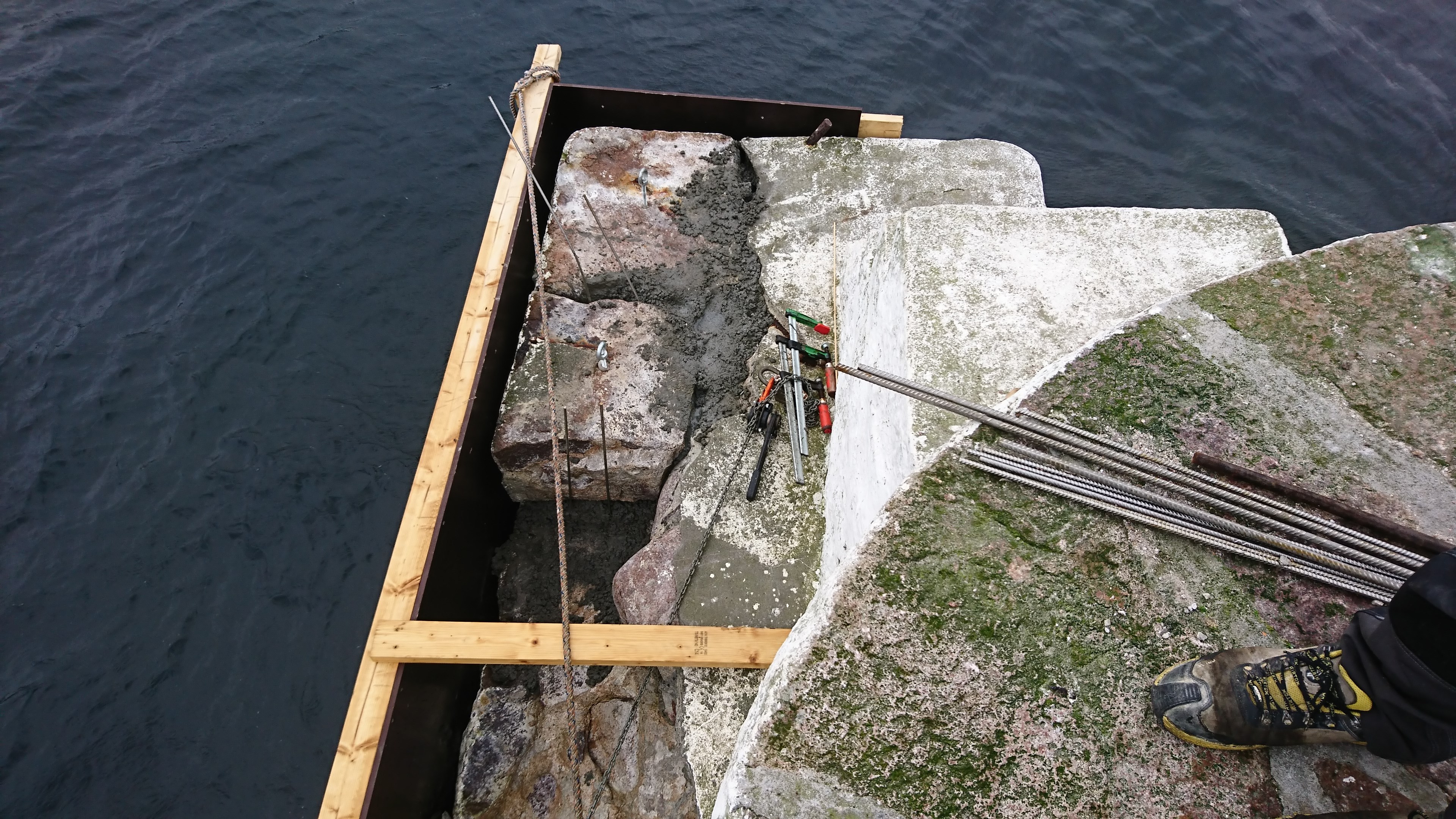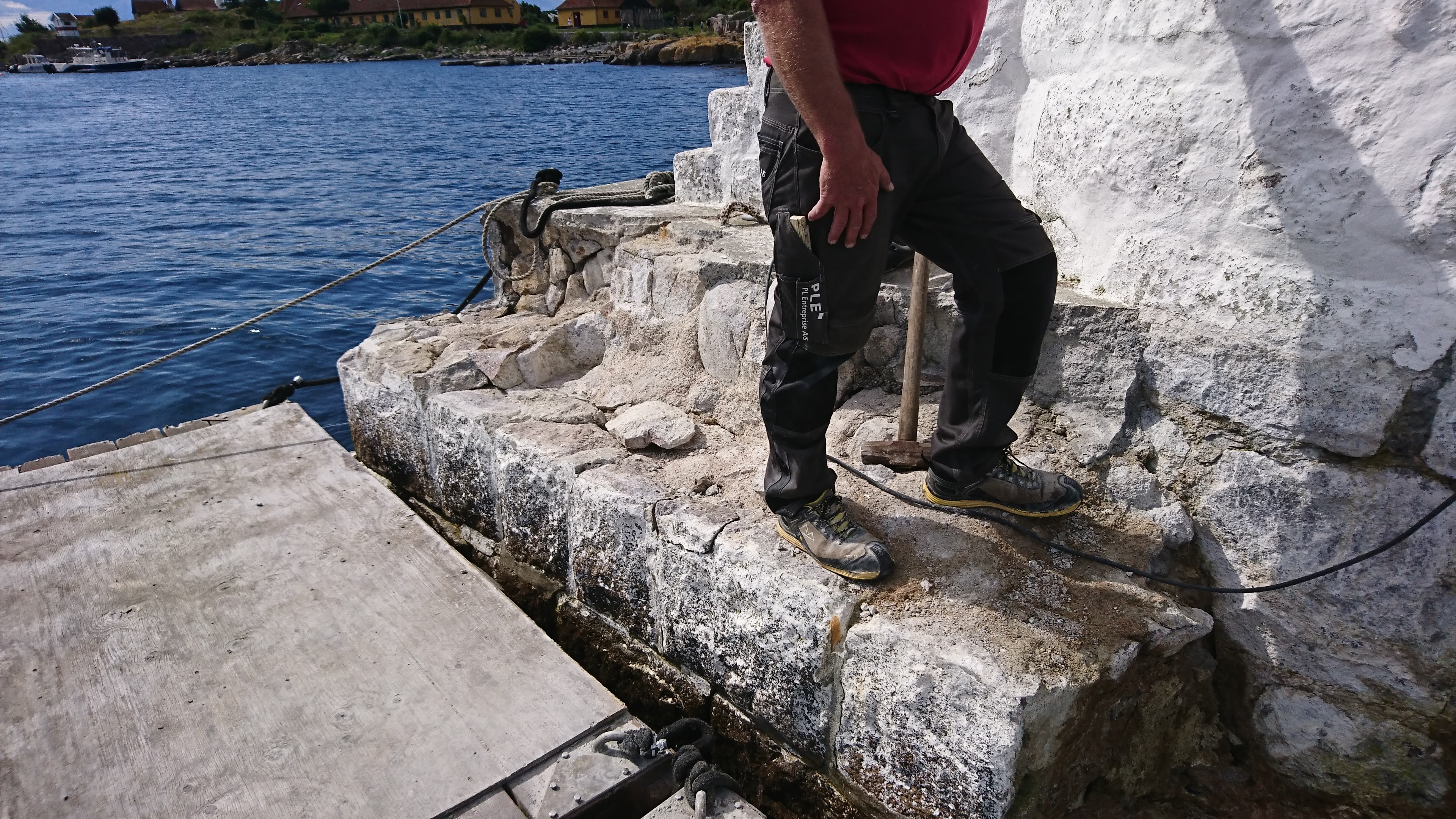 Nedhugning og genopmuring af eksisterende granitkvadrer, herunder bagstøbninger.