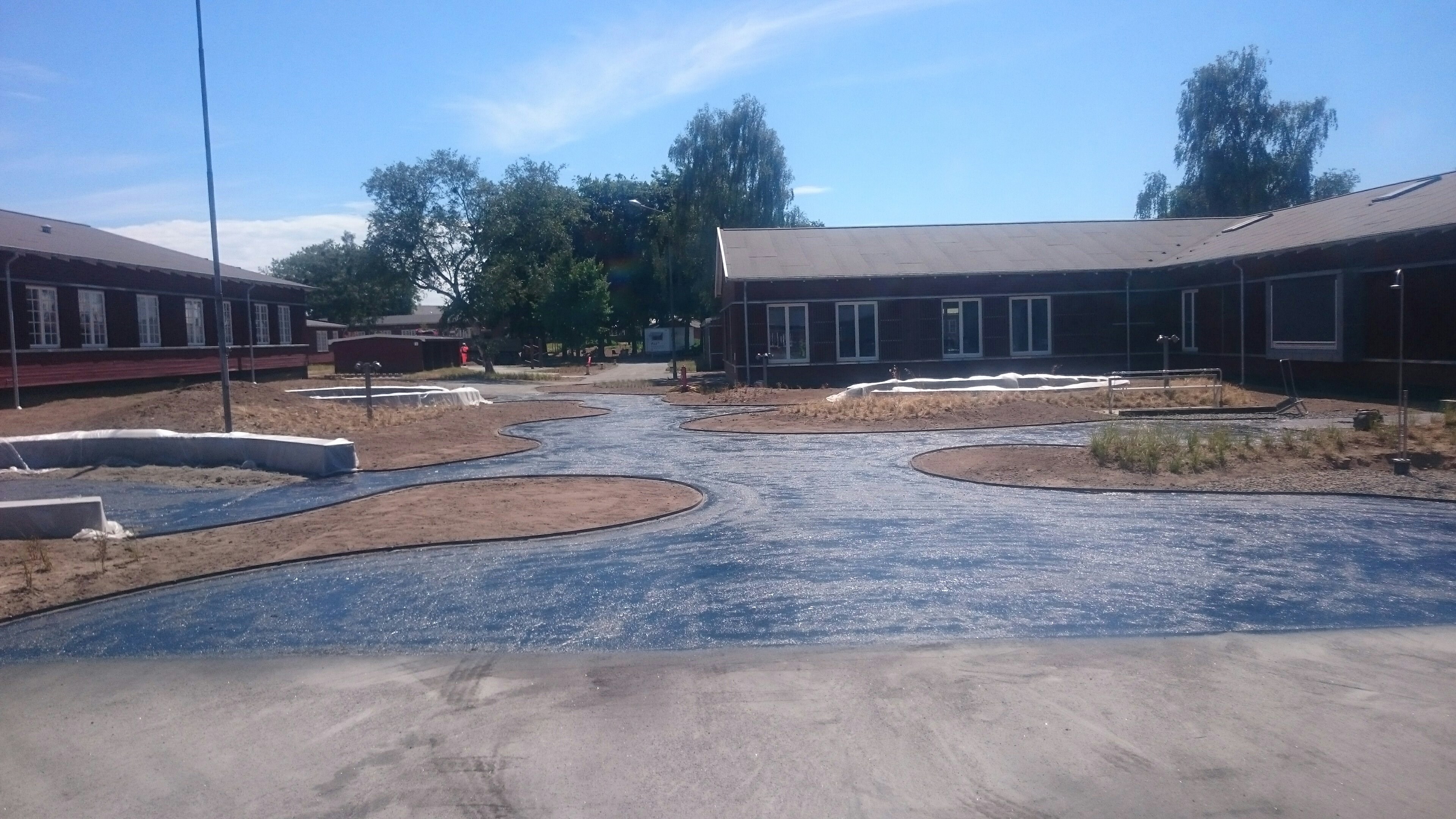 - Befæstigelsearbejde herunder ca. 3000 m2 asfaltbelægninger, 400 m2 trædæk, ca. 2400 m2 pladsstøbt betonsti.