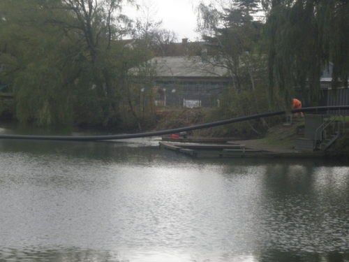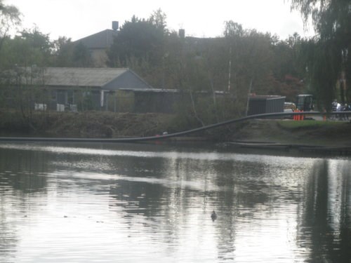 Etablering af overløb fra Zahrtmannssøen. Svejsning af Ø250 mm PE ledning ialt 190 mtr. Montering af ventil på ledningen, hvor man kan styre vandhøjden i søen.