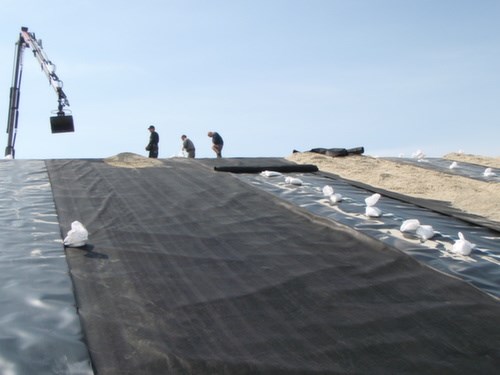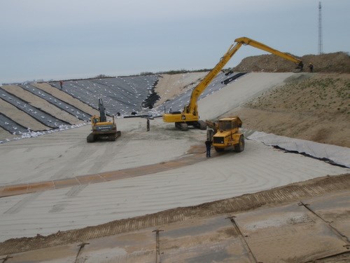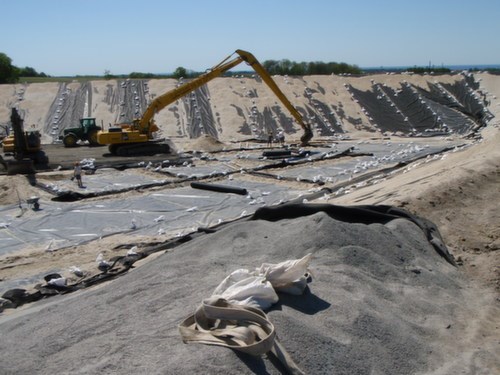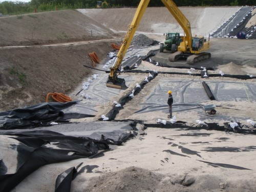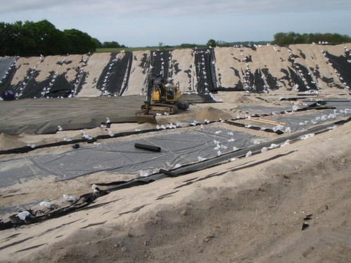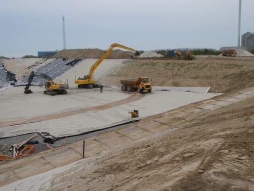 Ovenpå membran blev udført ca. 4000 m3 dræn- og beskyttelseslag.