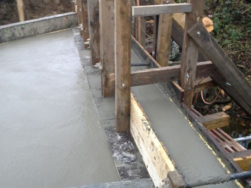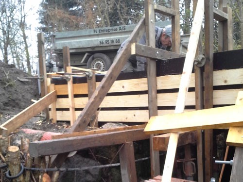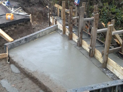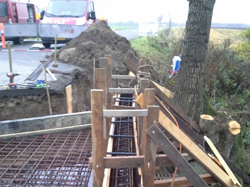 Forskalling, armering og støbning af nyt betondæk og ny kantbjælke.