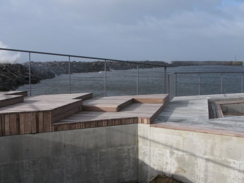 Badeanlægget forbindes til land via en 25 m. lang stålbro.