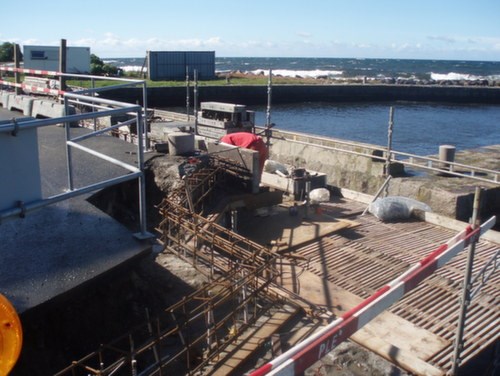 Forskalling, armering og udstøbning af ny armeret kajkant.