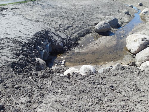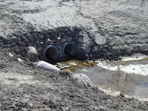 I forbindelse med det ene bassin er der udført en tæt foring med ler i bunden af bassinnet.