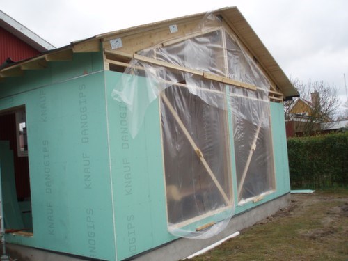 Opførelse af ca. 50 m2 stor tilbygning til et svensk træhus.