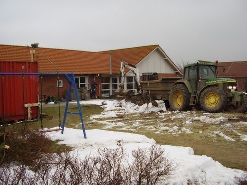 Entreprisen bestod i ombygning i den eksisterende bygning og opførelse af en ca. 250 m2 nybygning. Nybygningen er opført i letbetonelementer og skalmuret. Taget er udført i røde vingetagsten.