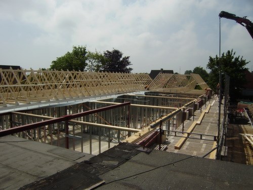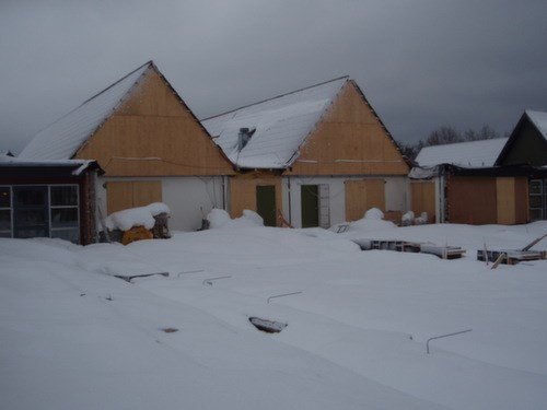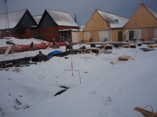 Bygningen opføres med et bærende system af stål/gips med skalmurede facader. Tagkonstruktionen udføres primært som gitterspær med eternitplader og sekundært som flade tage med Protan tagfolie.