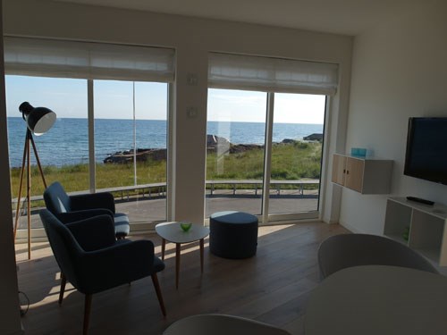 Lejlighederne er forsynet med balkoner med direkte panorama udsigt over Østersøen og Hammmerknuden .