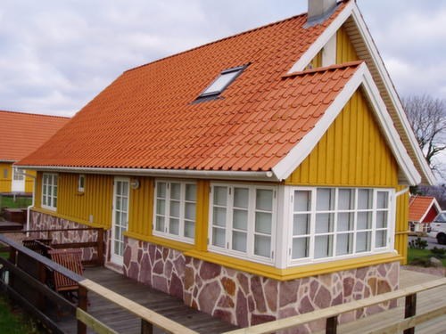Det eksisterende hus er opført i delvis træbeklædning og med muret sandstenssokkel.