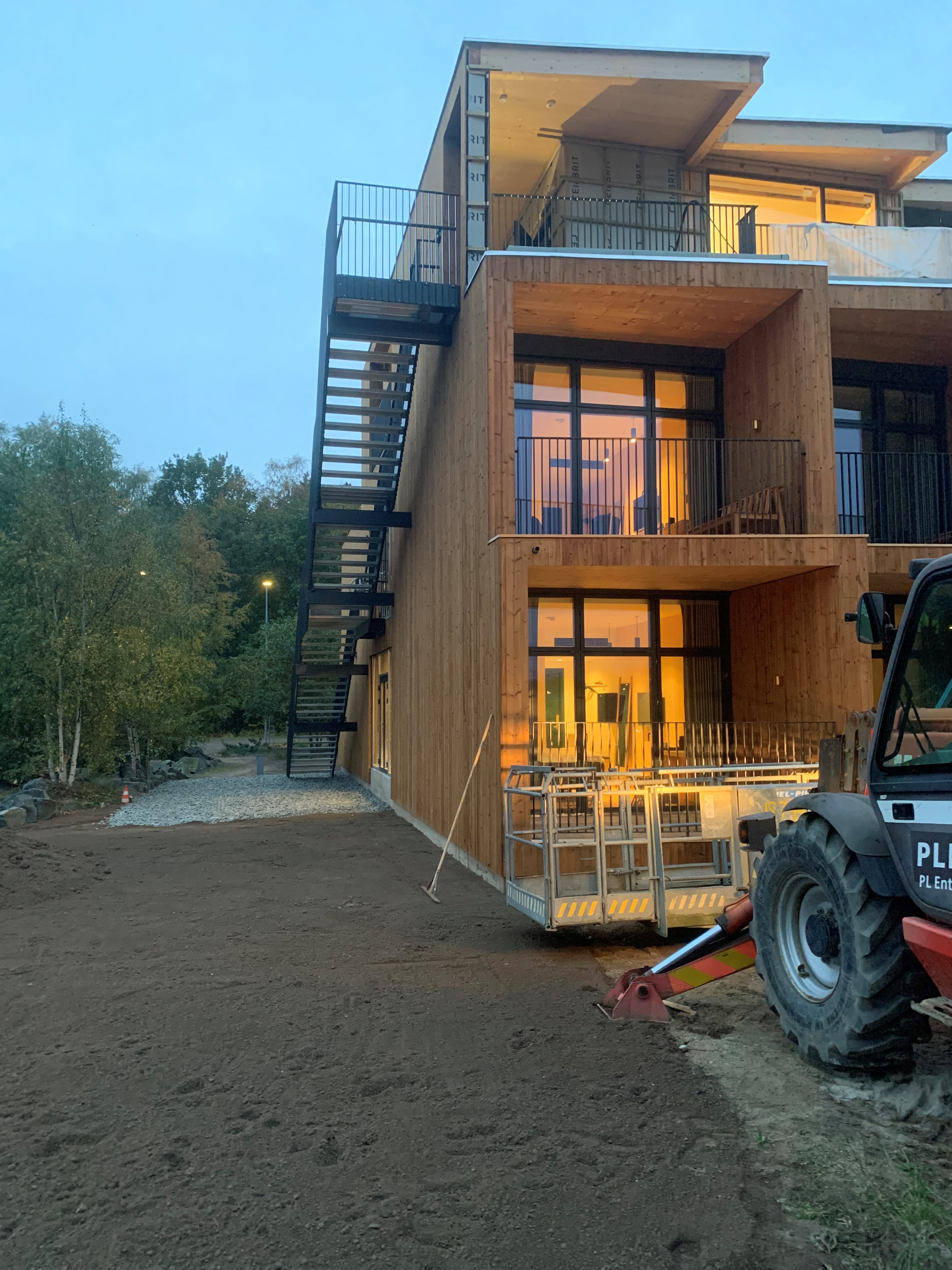 Bygningen skal bygges hovesagligt af massive CLT-træelementer og er en af de første af sin slags i Danmark og kommer til at være en del af læren om fremtidige CLT-byggerier i Danmark.