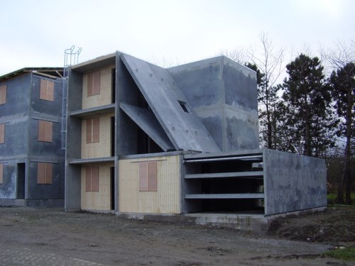 Redningsruinen fremstår som to delvis sammenstyrtede (kollapsede) byhuse adskilt af en smal passage placeret ved en vej med fortov. Bygningerne er udført som traditionelt etagebyggeri af betonelementer.