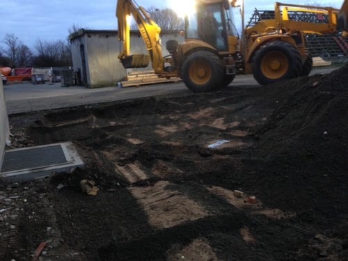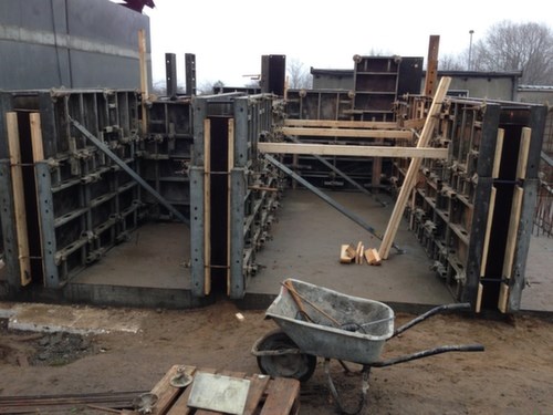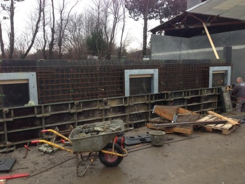 Udgravning for og støbning af et nyt søge- og gennembrydningsfelt i insitu-støbt beton.