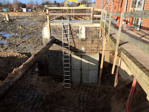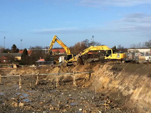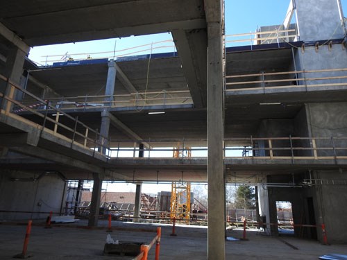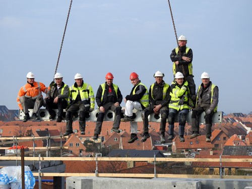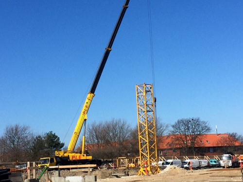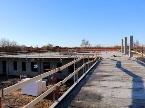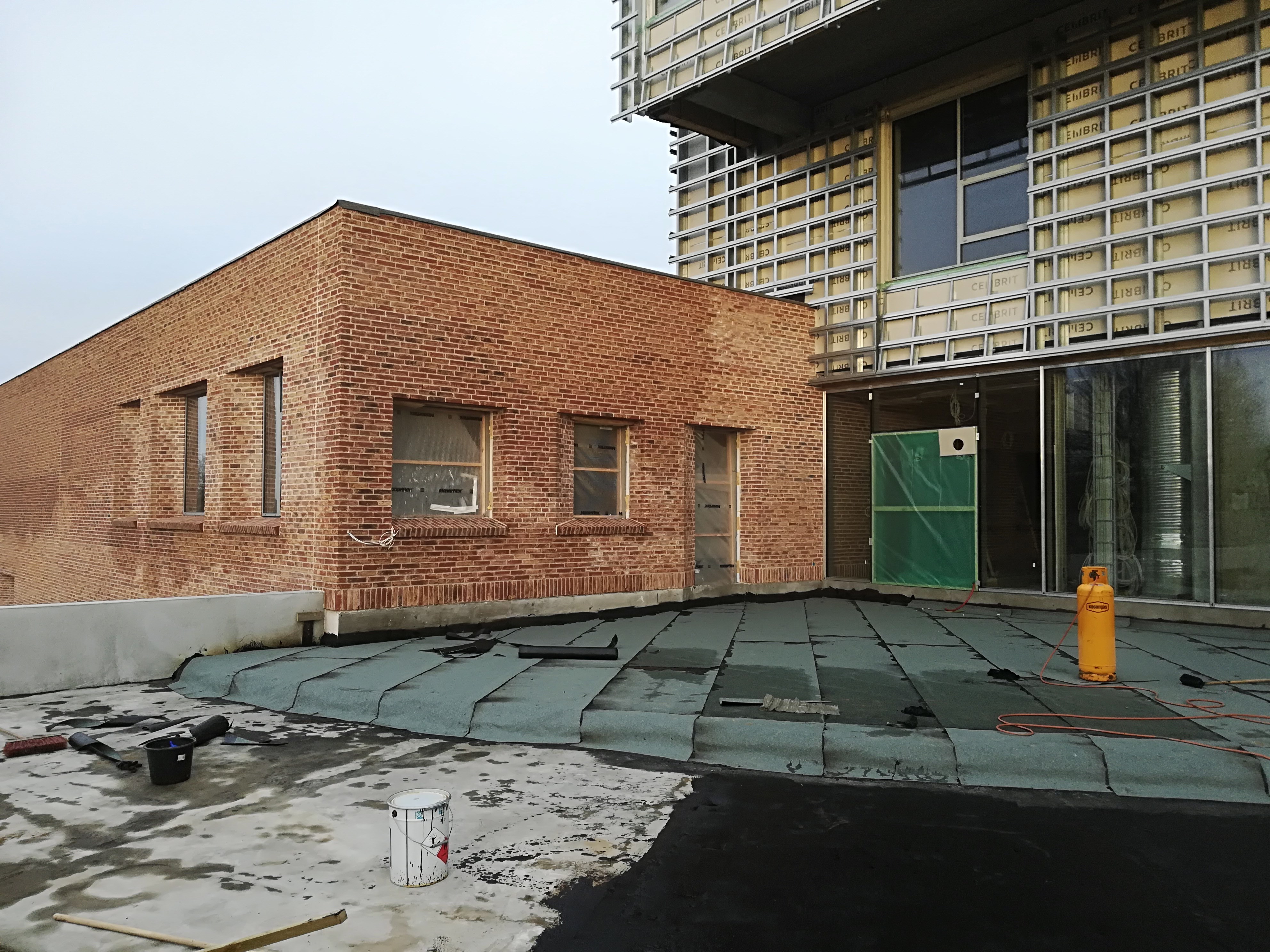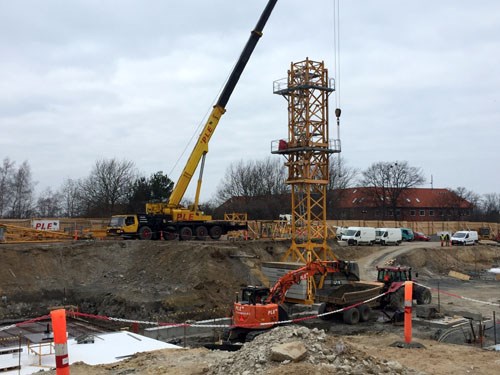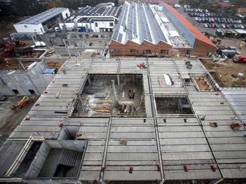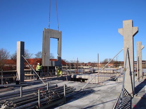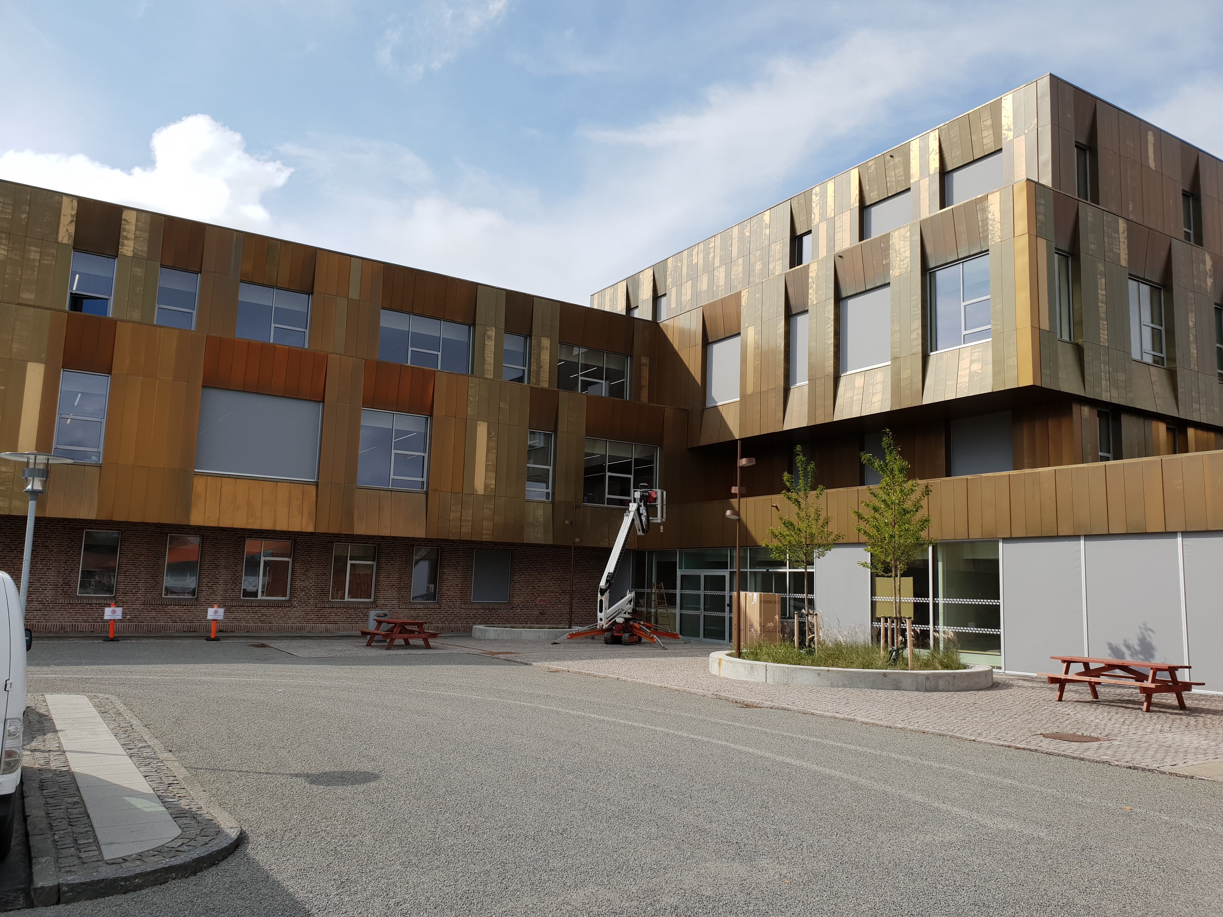 Byggeriet er opført med kælder-/parterreetage og 4 etager over terræn, samt kælder, forbindelsesgang og tilbygning mod eksisterende byggeri. Etagerne er opbygget omkring et gennemgående større torv og et mindre torv. Kælder og betonvægge op gennem etagerne er udført som blandet in situ beton og betonelementer. Nybyggeriet fra stueetage til og med 3. etage er udført som betonsøjle-/bjælke elementbyggeri med beton huldæk/termoaktive dæk. Ydervægge på parterreetage og stueetage er udført som betonbagvægge med teglskalmur. Ydervæggen på 1. etage-3. etage er udført som lette kassette-/panelvægge, indvendigt afsluttet med gipsvæg og udvendigt afsluttet med skelet og tombak kassetter – en cradle-to-cradle certificeret facadebeklædning i rødbrune nuancer, og der anvendes røde tegl for at bevare udtrykket fra de eksisterende værkstedsbygninger.