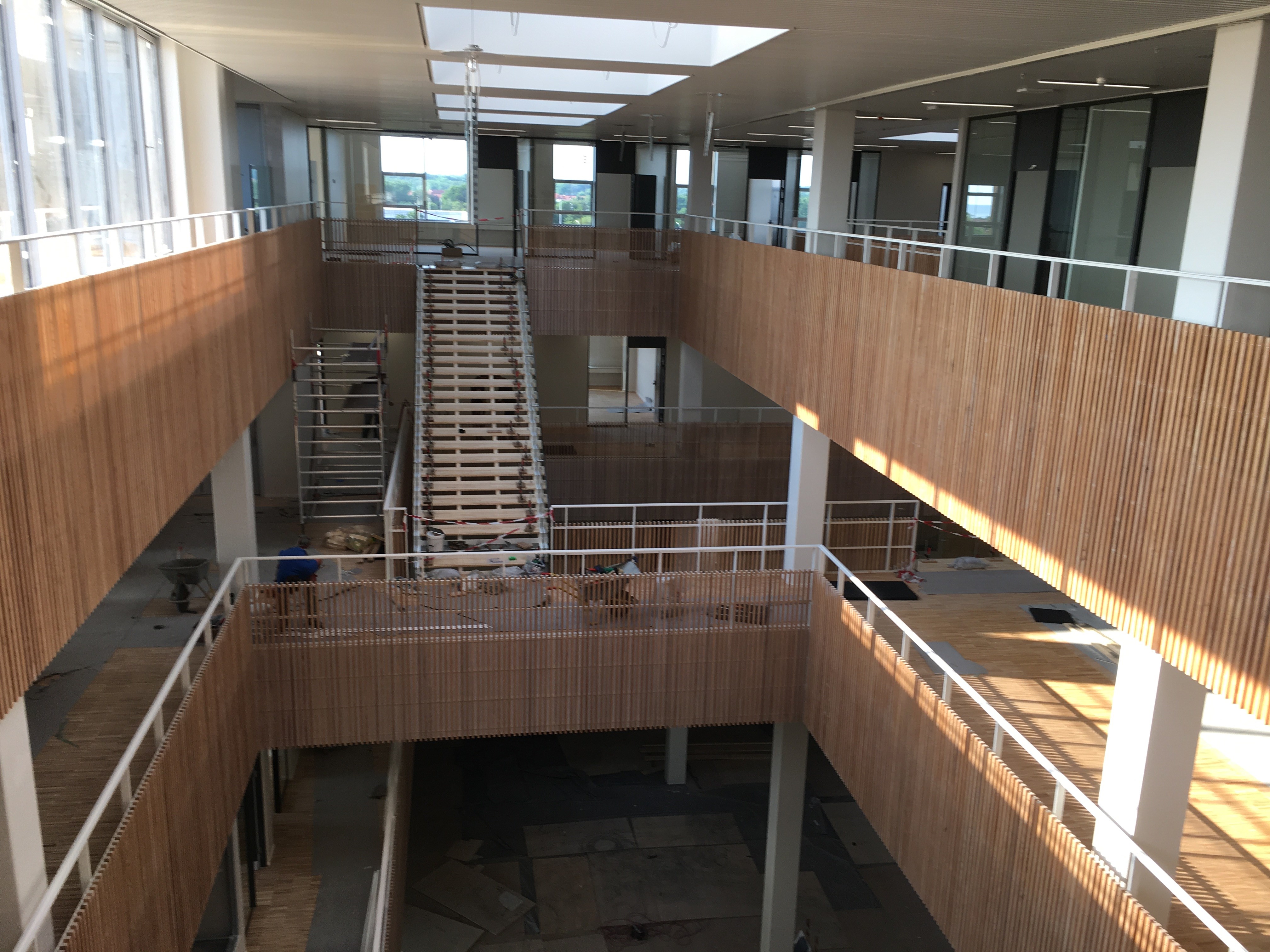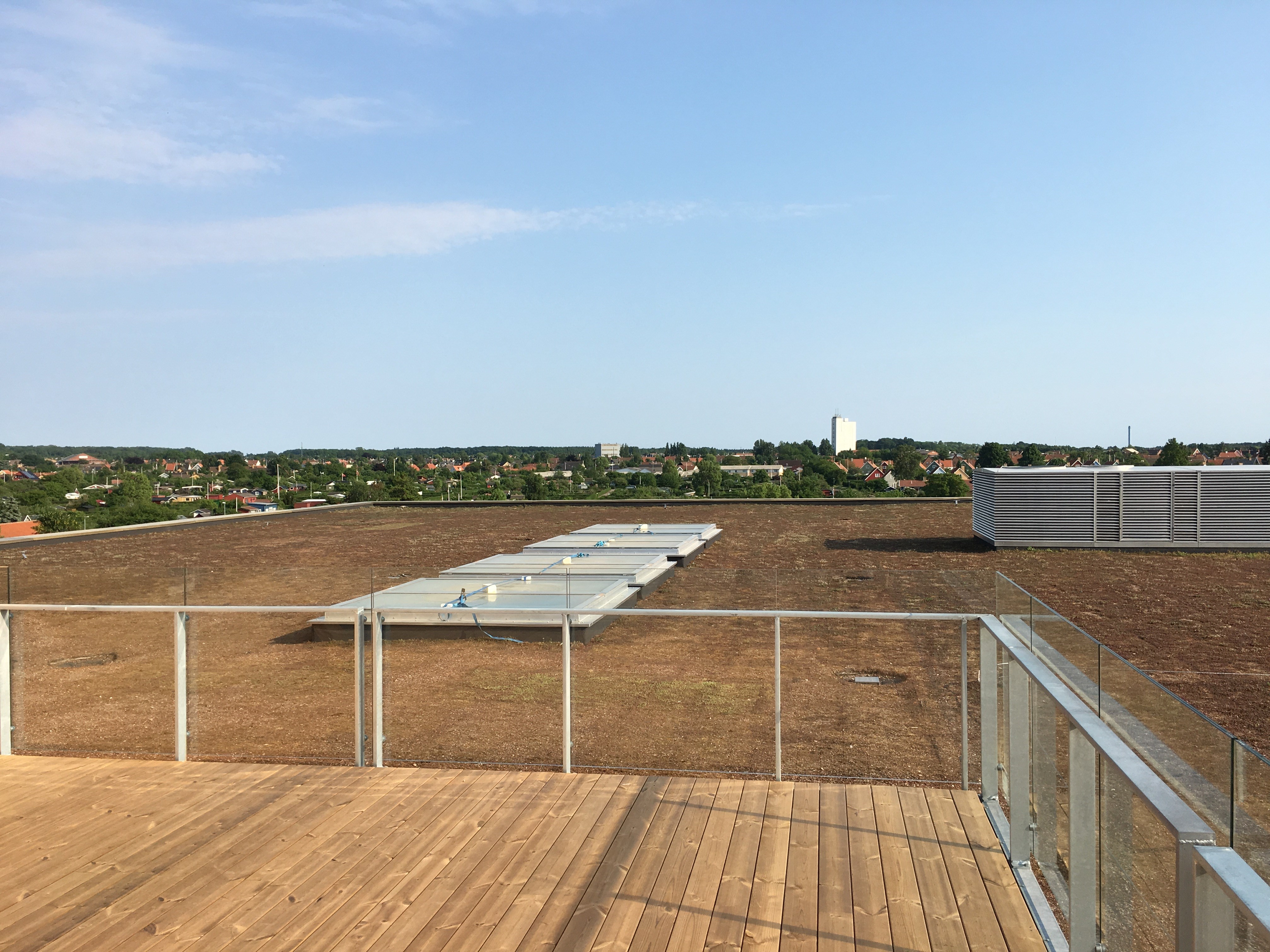 Tagkonstruktionen er generelt opbygget med beton elementer med efterfølgende tagisolering, tagpap og mossedum. Udvendige døre- og vinduespartier er udført i aluminium med termoruder. Der er monteret udvendige solscreens i forbindelse med dør- og vinduespartier. Indvendige døre- og vinduespartier er udført i metal og træ. Lofter er udført som nedstroppede akustikregulerende panellofter og enkelte hygiejnelofter. Gulve er udført med slidlag, natursten, fliser, trægulve, linoleum og vinyl. Der er udført land-skabsarbejder med støttemure, ramper, trapper, belægninger, terræninventar, muldarbejder, planter, græs og pleje af beplantning.