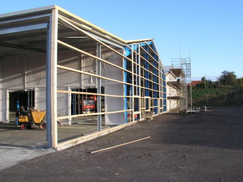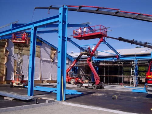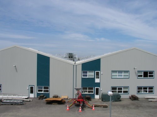 Konstruktionerne blev udført som bærende stålrammer, lette facader samt præfabrikerede ståltagkassetter.
