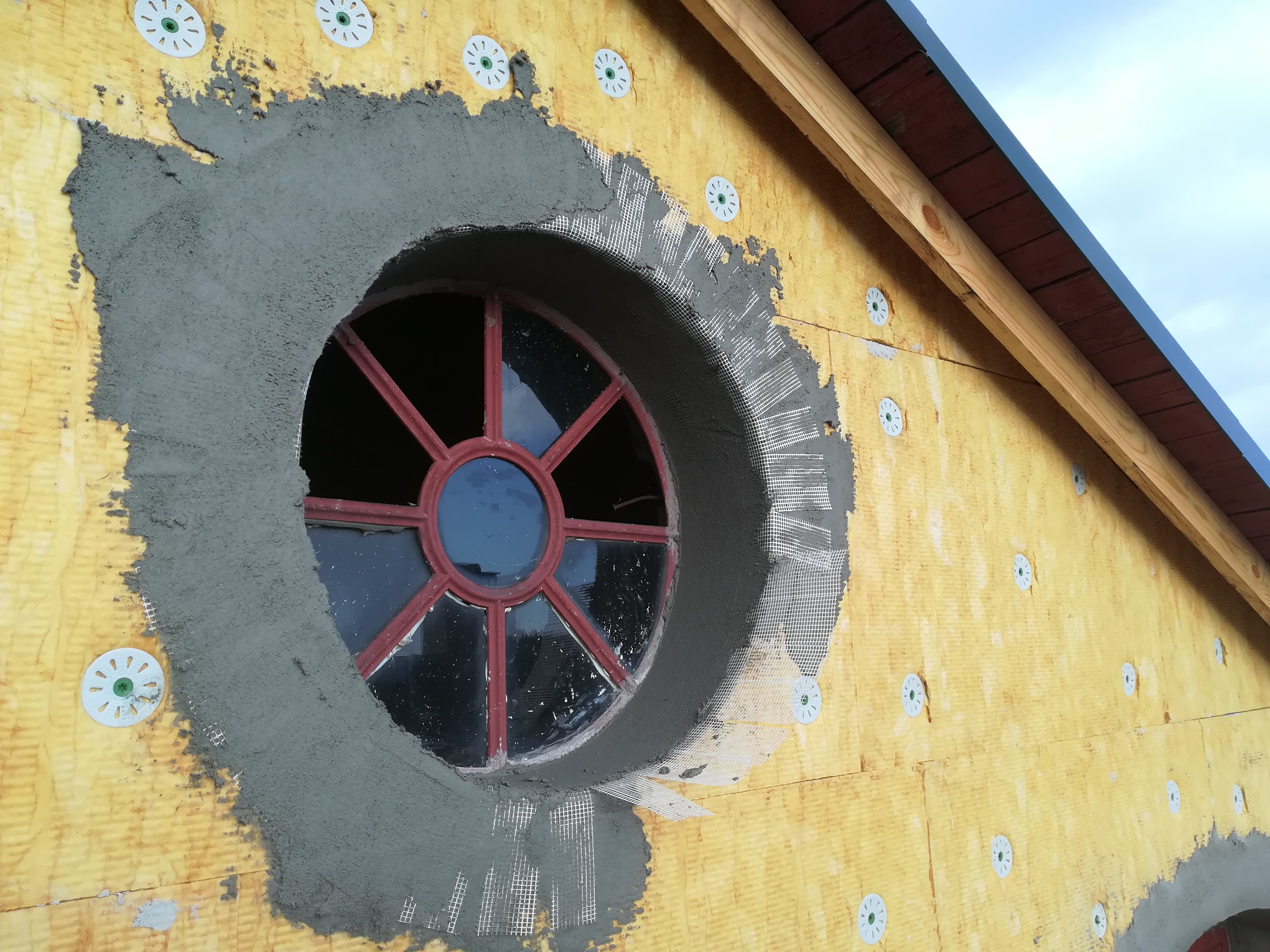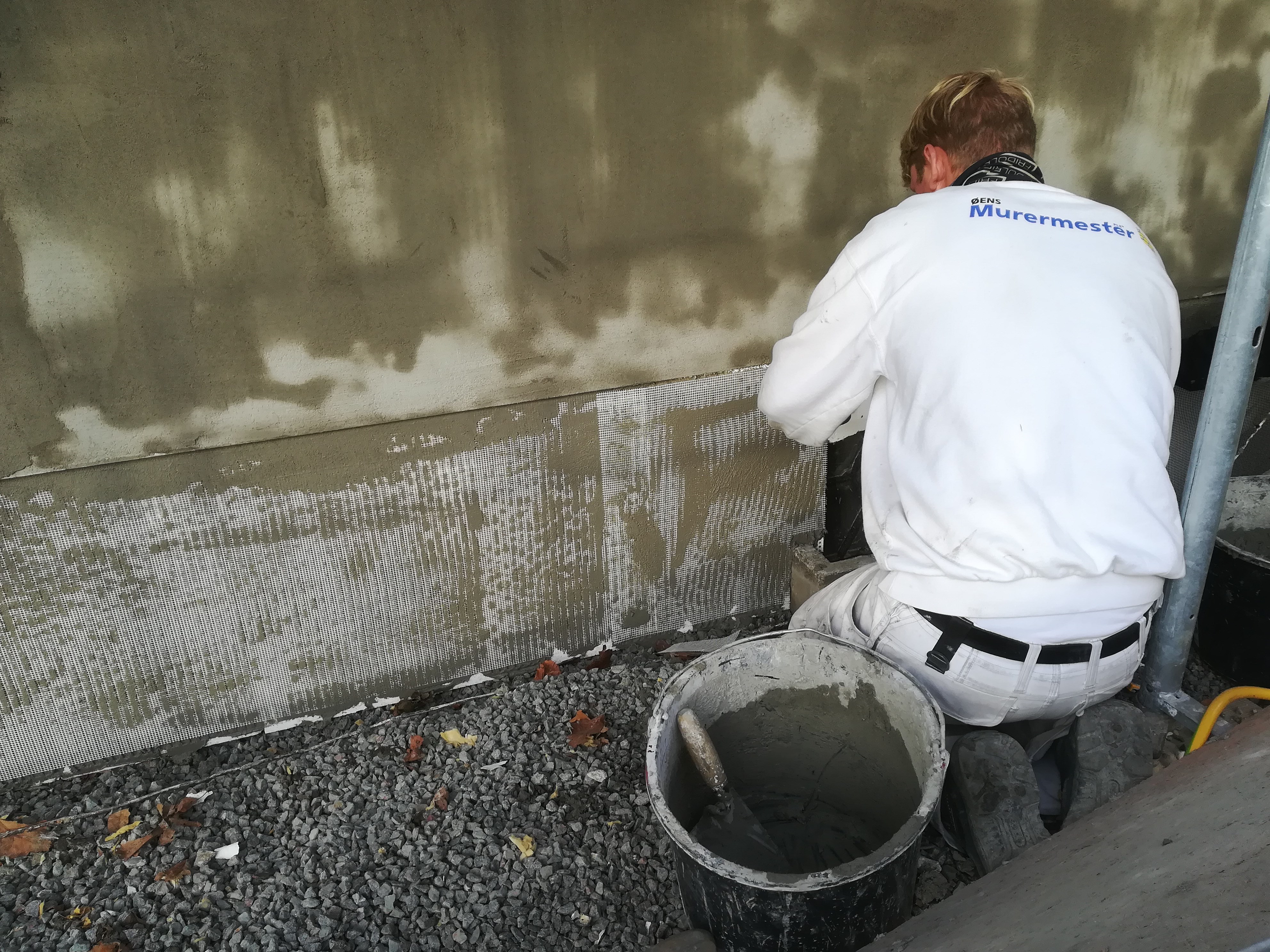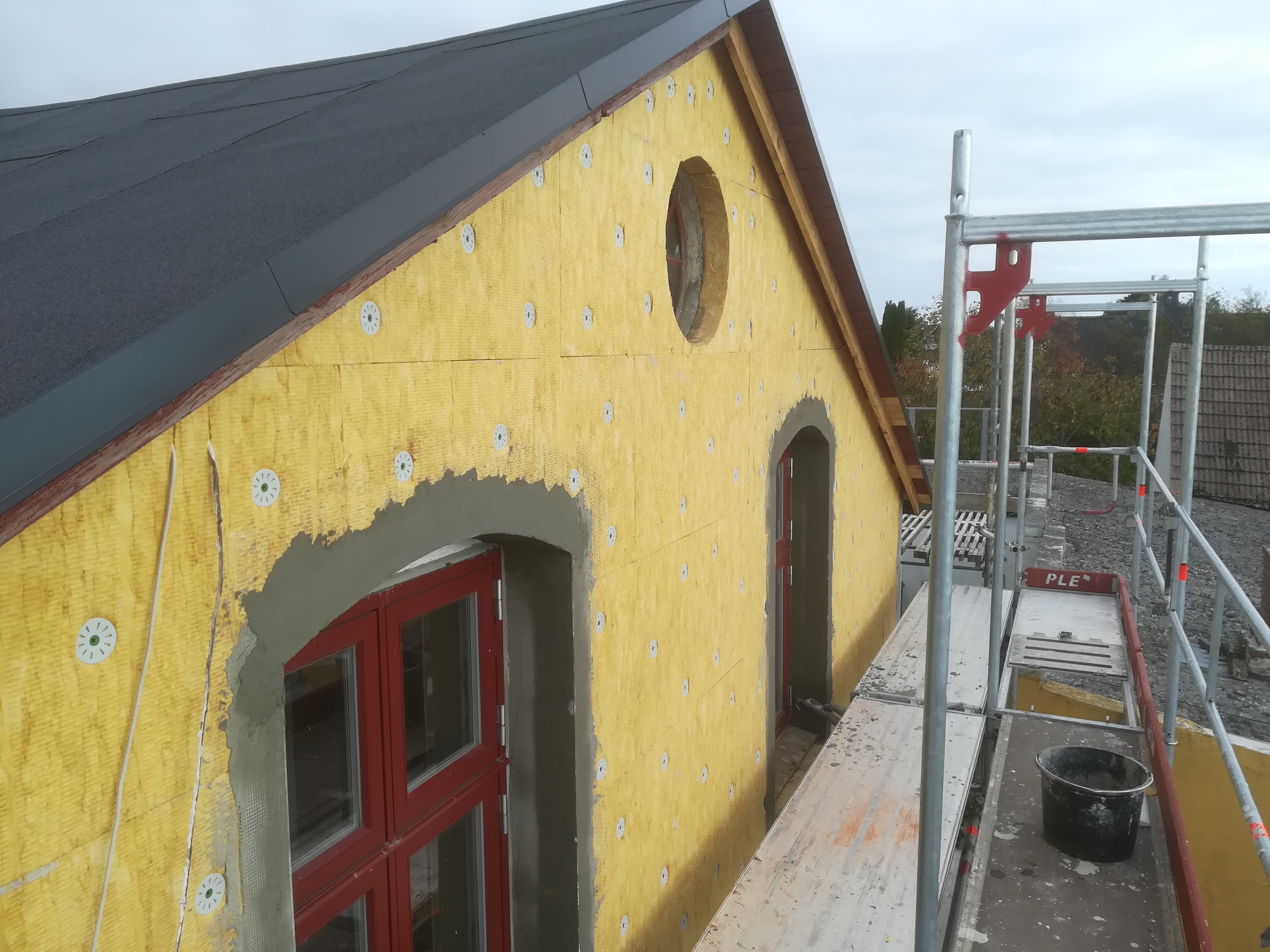 Sokkel er også isoleret og pudset med afsluning af sokkelpuds fra Alfix.