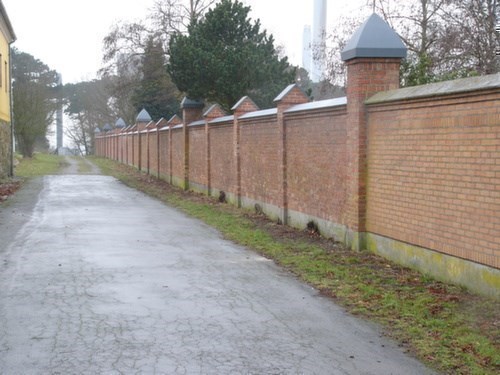 Renovering af ca. 100 lbm kirkegårdsmur, herunder etablering af nye afdækninger, pilletoppe og spir i polybeton.