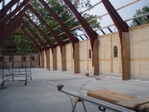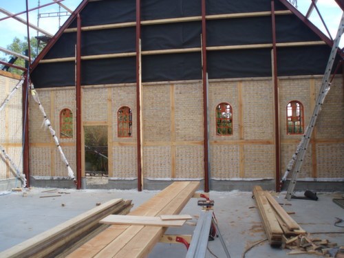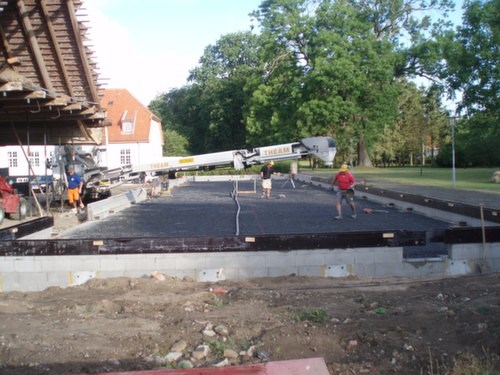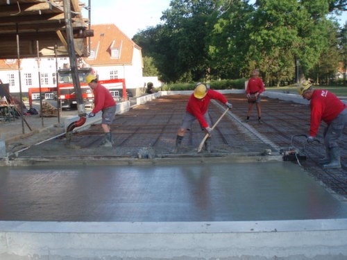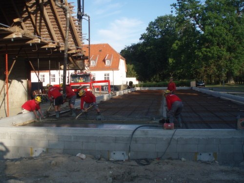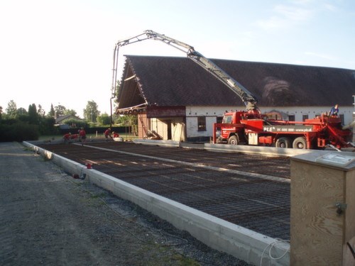 Opførelse af ny staldbygning. Bygnignen opføres med støbt terrændæk, sålspær, bindingsværk og udmuring af tavler.