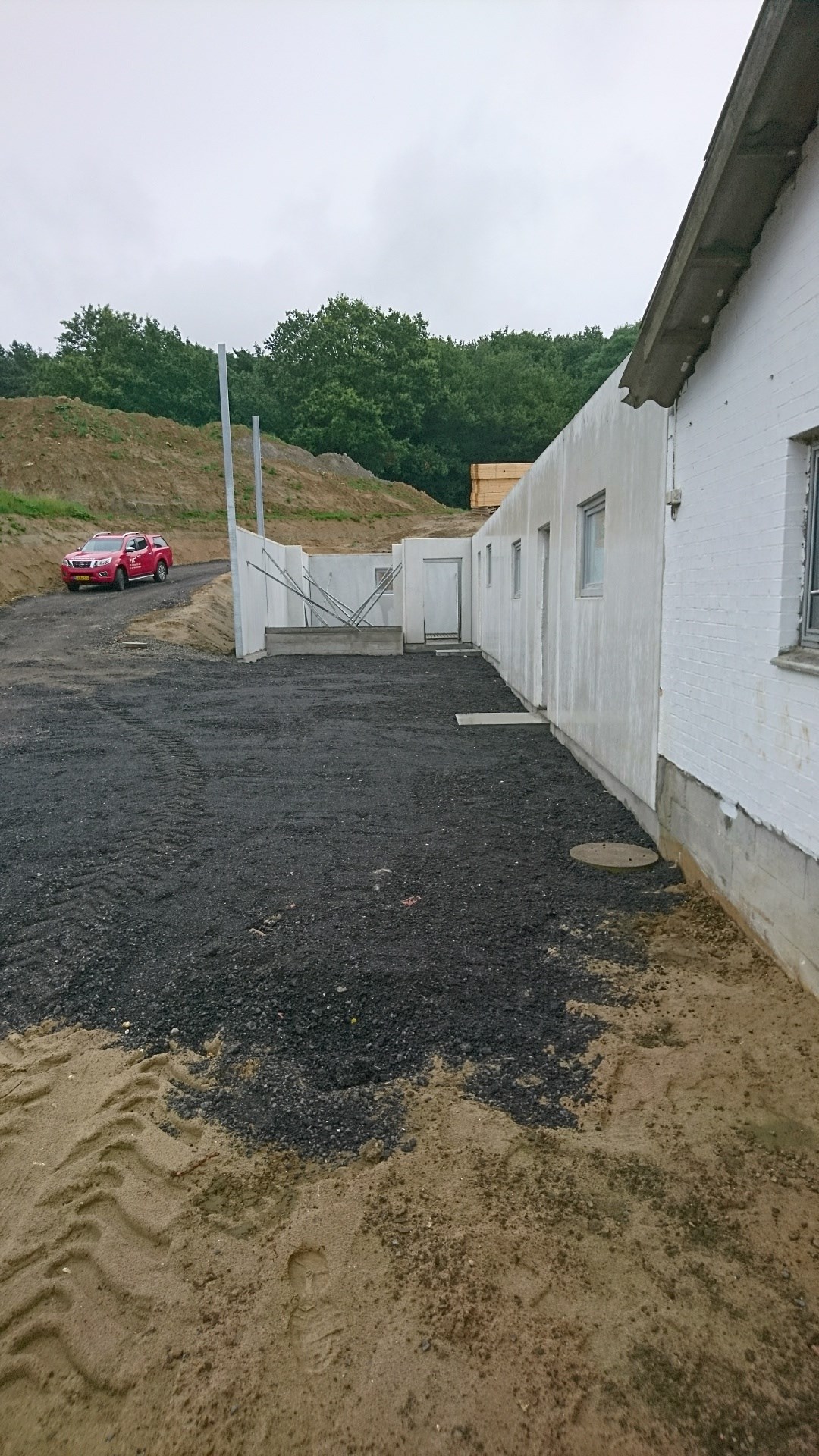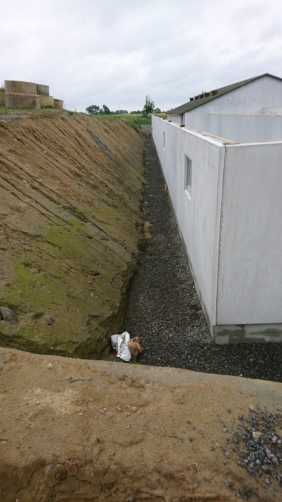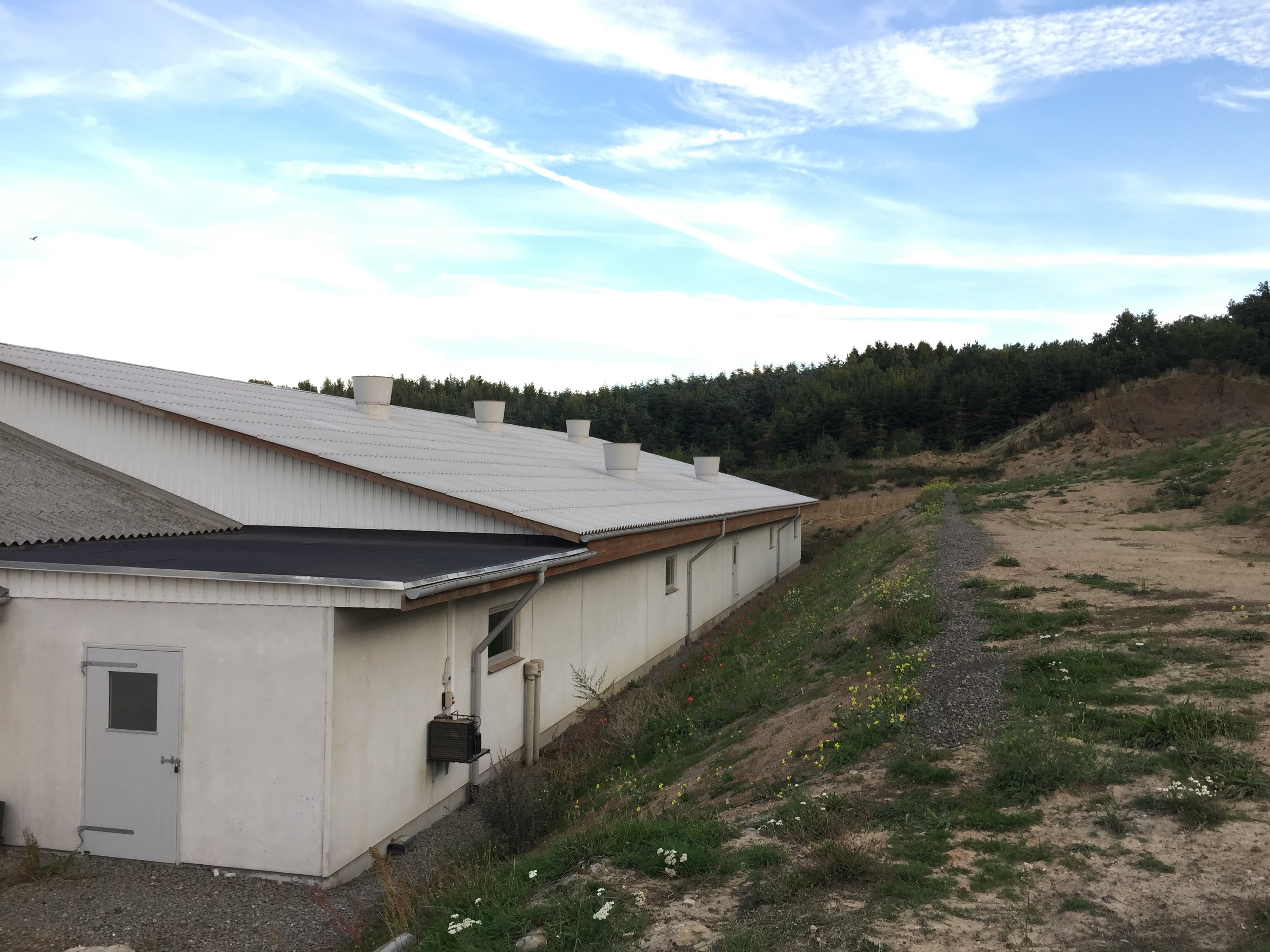 Slagtesvinestald udføres med facader som præfabrikerede betonsandwichelementer, tag som 15 gr. eternit og loftkonstruktion med træbeton.