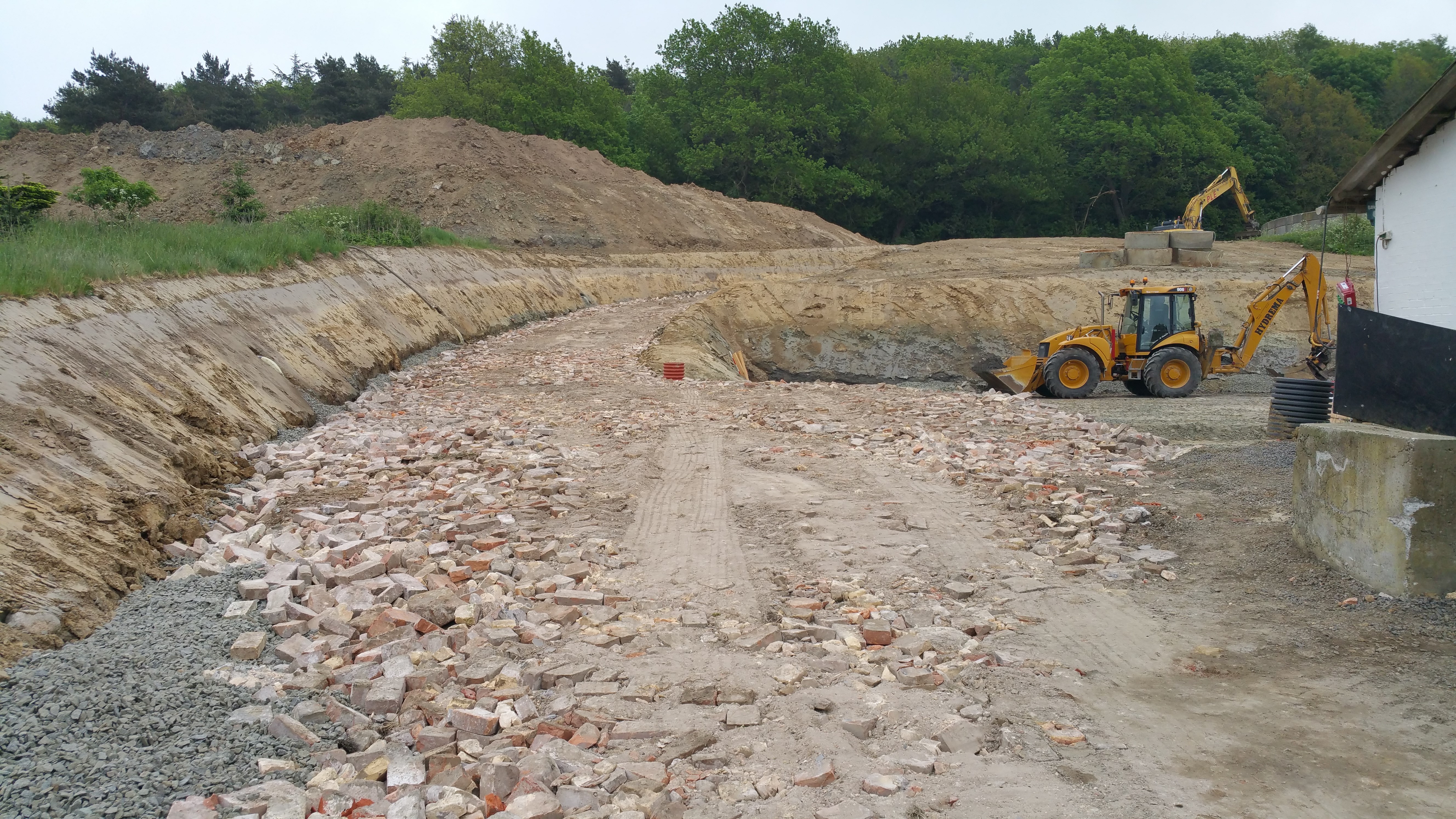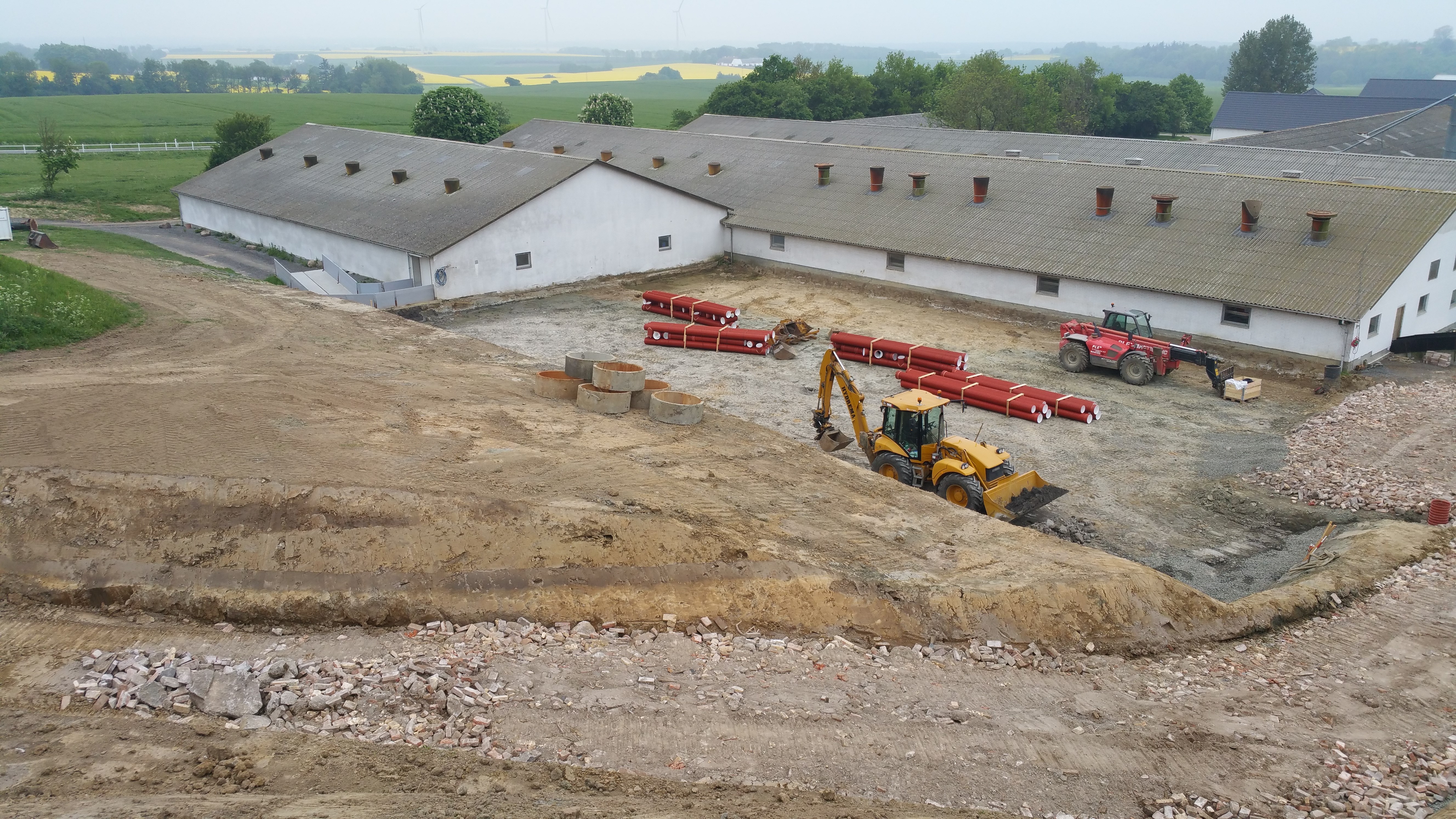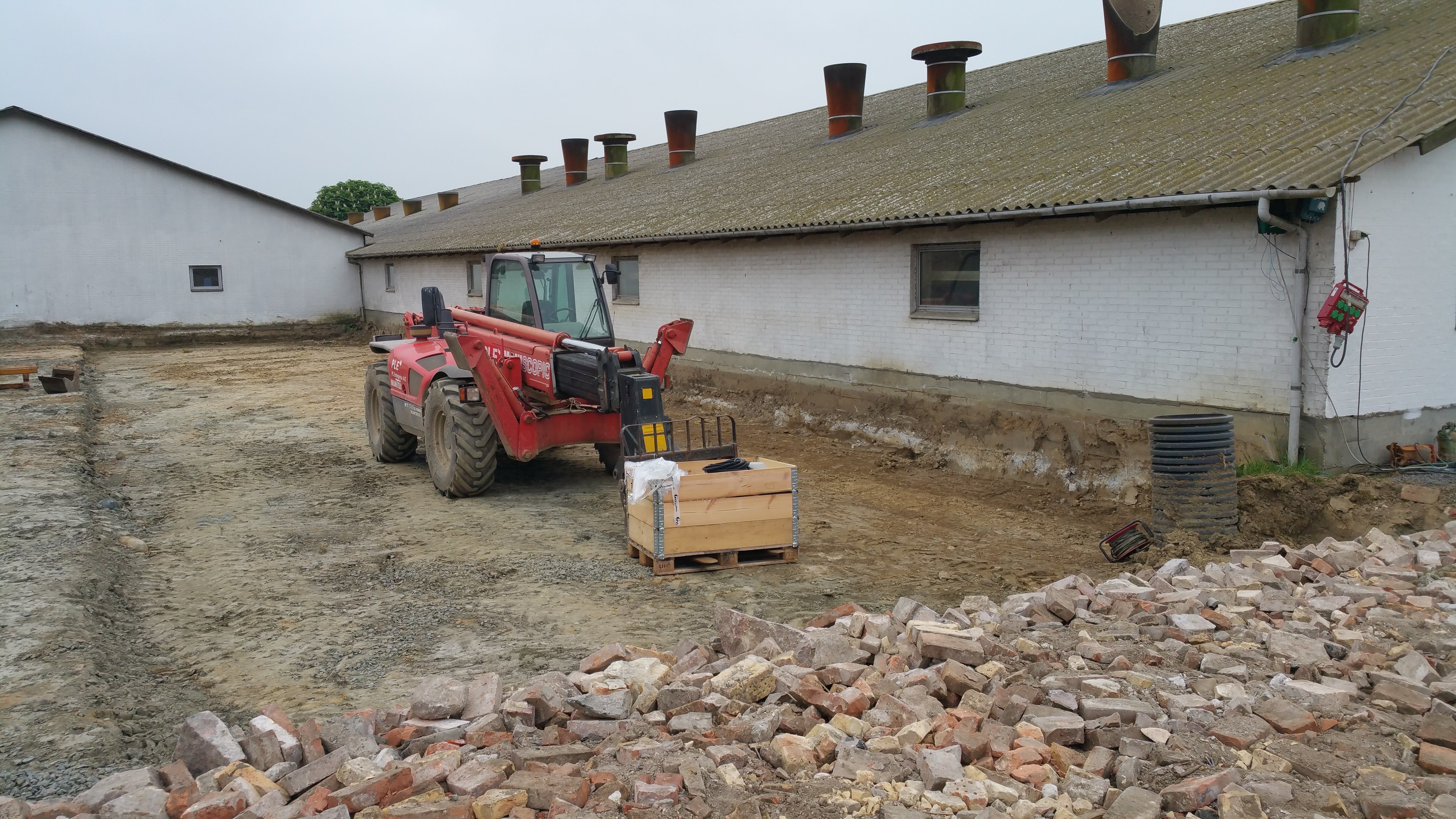 Slagtesvinestald udføres med facader som præfabrikerede betonsandwichelementer, tag som 15 gr. eternit og loftkonstruktion med træbeton.
