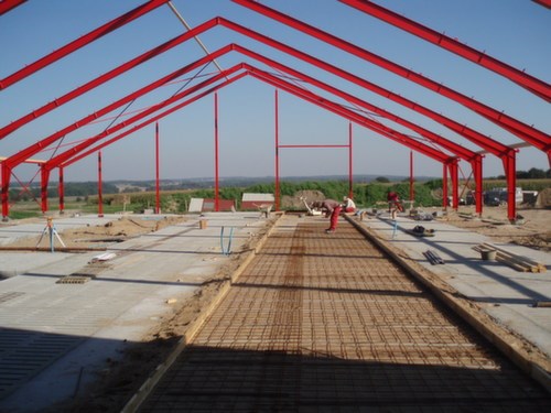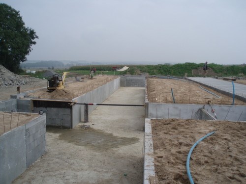 Bygningen er opført med gyllekanaler i præfabrikerede betonelementer.