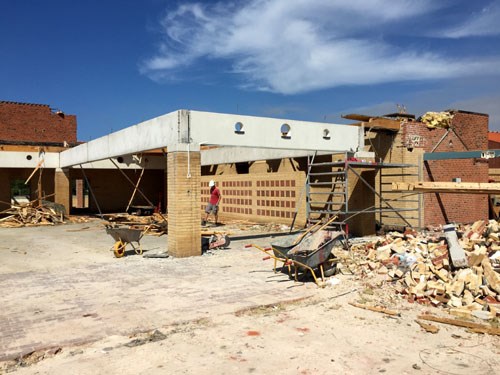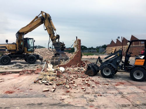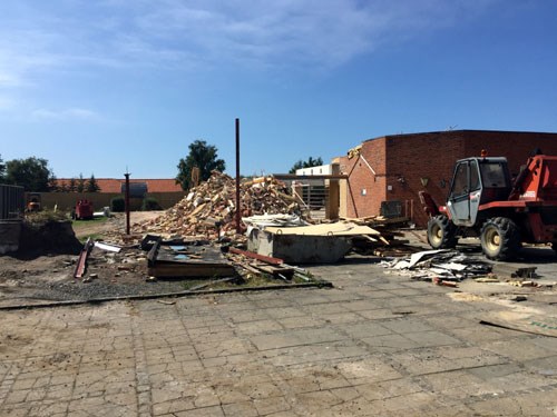 Miljøsanering, sandblæsning, nedtagning, opbrydning og sortering af diverse byggematerialer i forbindelse med nedrivning af skolebygning/administration/kantine (ca. 2.000 m2). Diverse installationer nedtaget.
